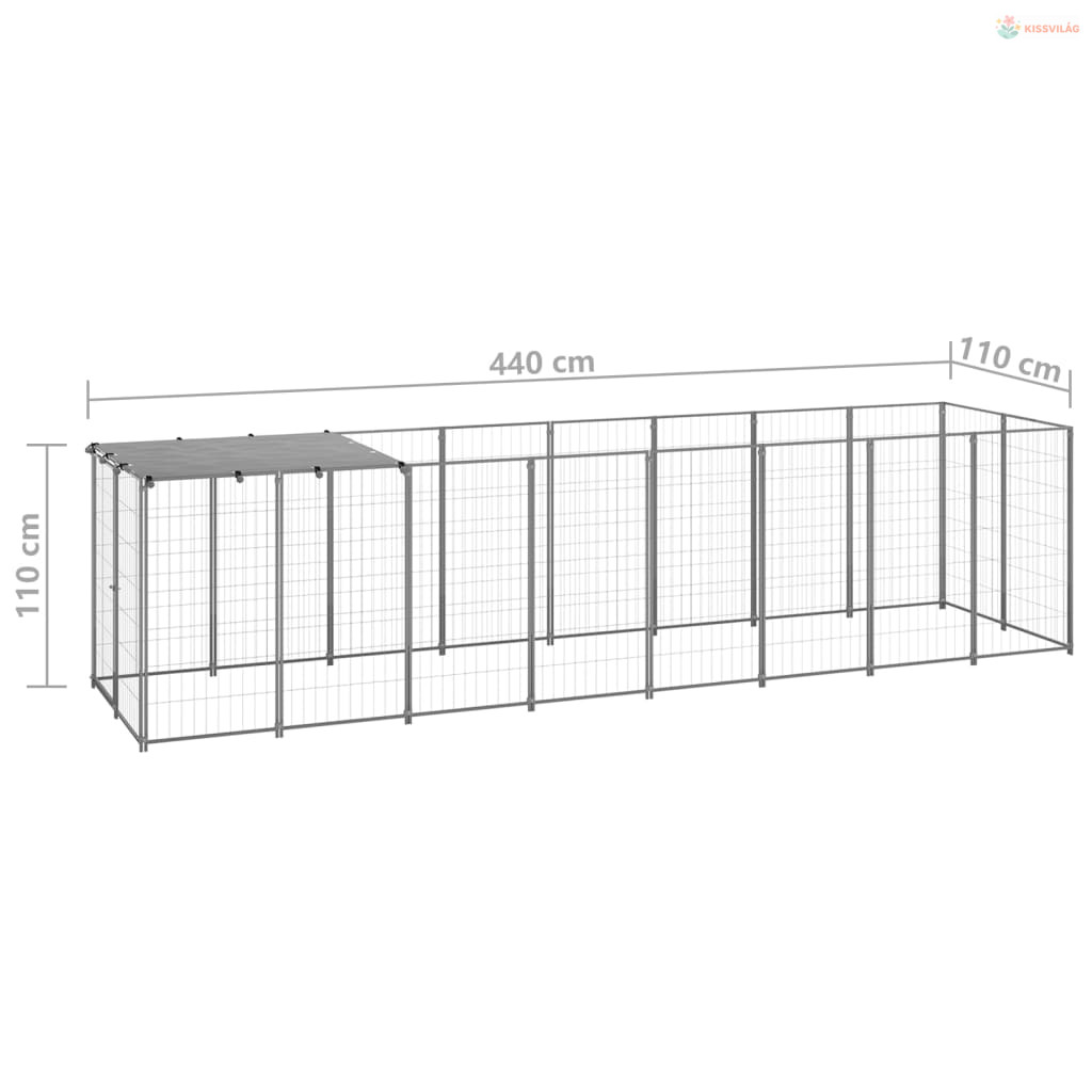 Ezüstszínű acél kutyakennel 4,84 m²