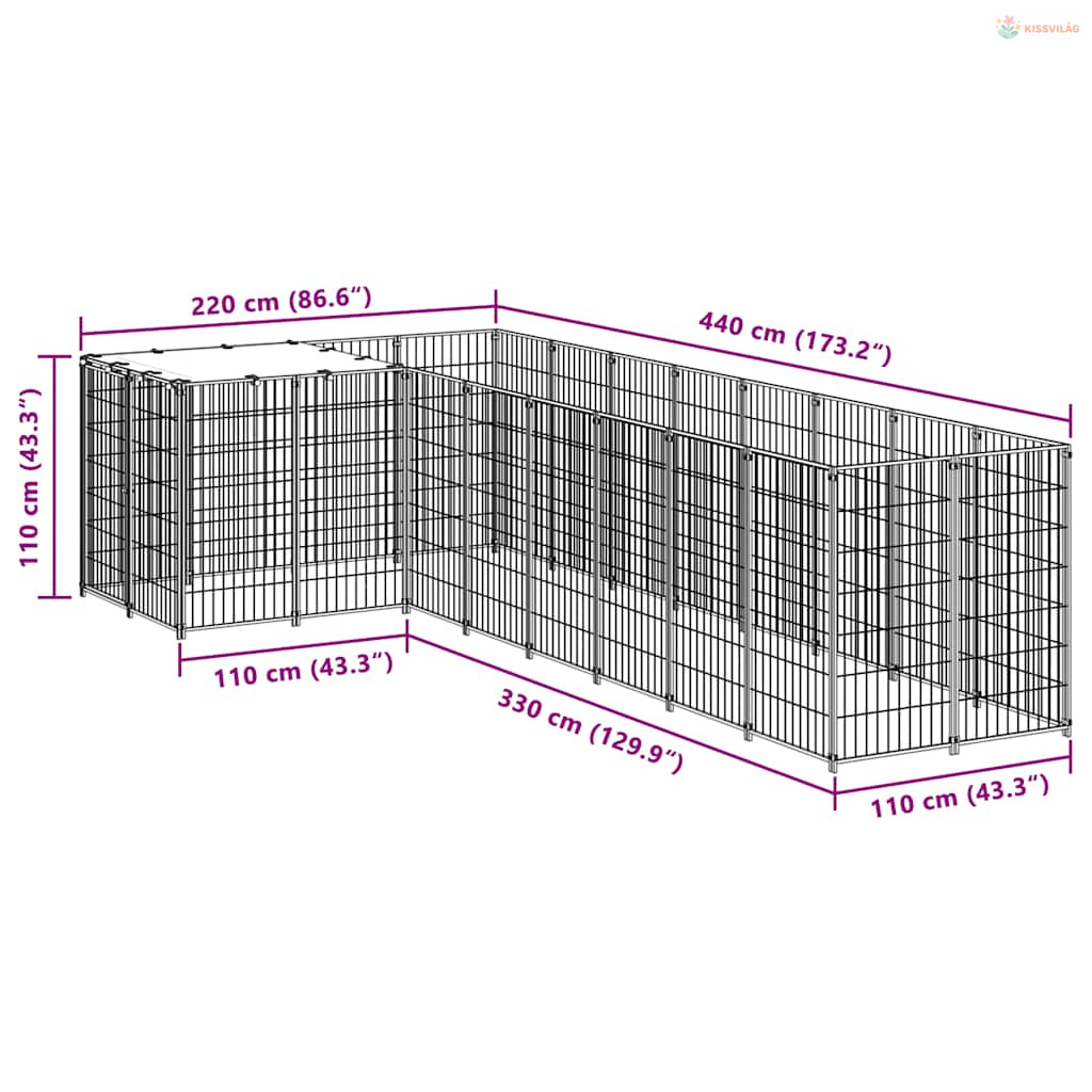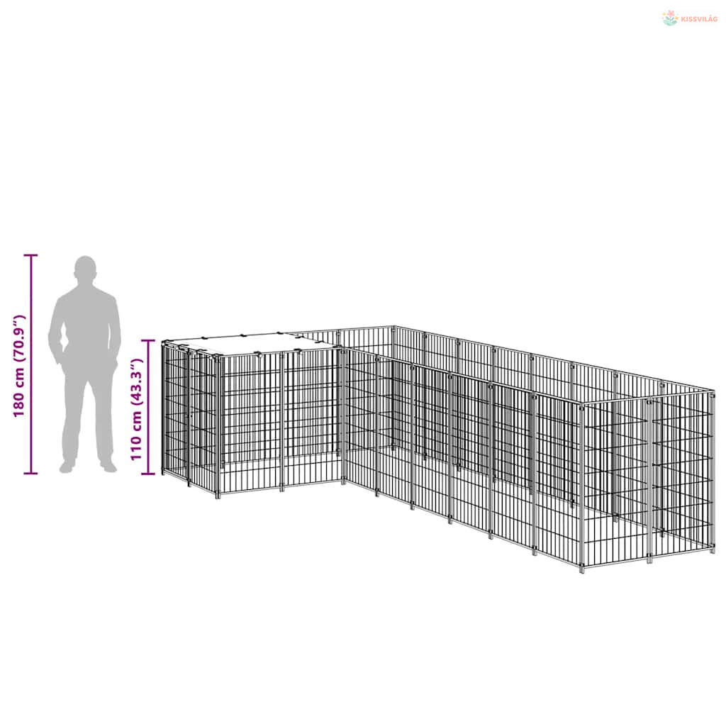 Ezüstszínű acél kutyakennel 6,05 m²