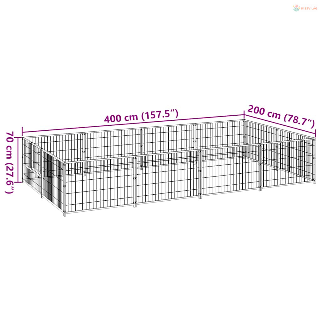 Ezüstszínű acél kutyakennel 8 m²