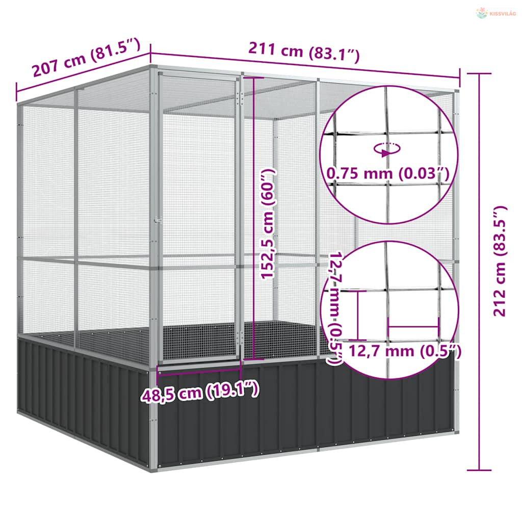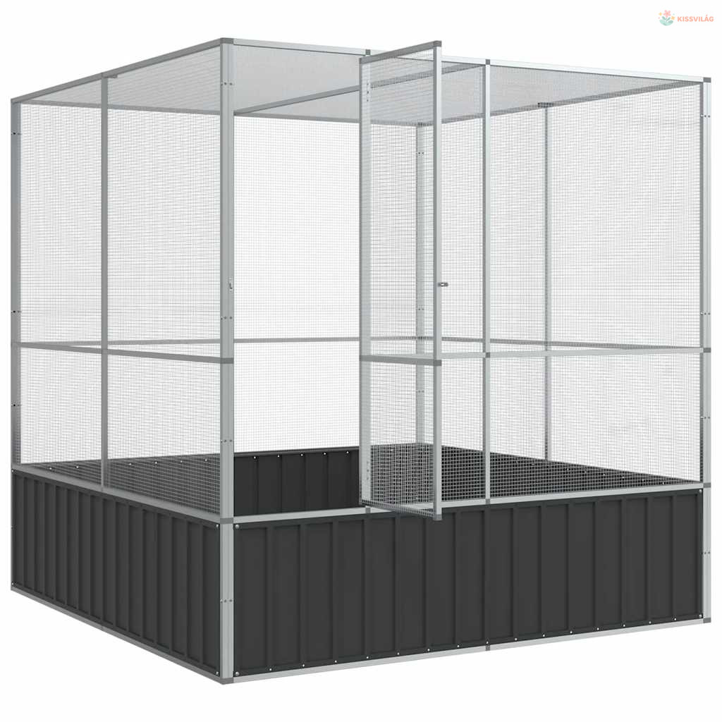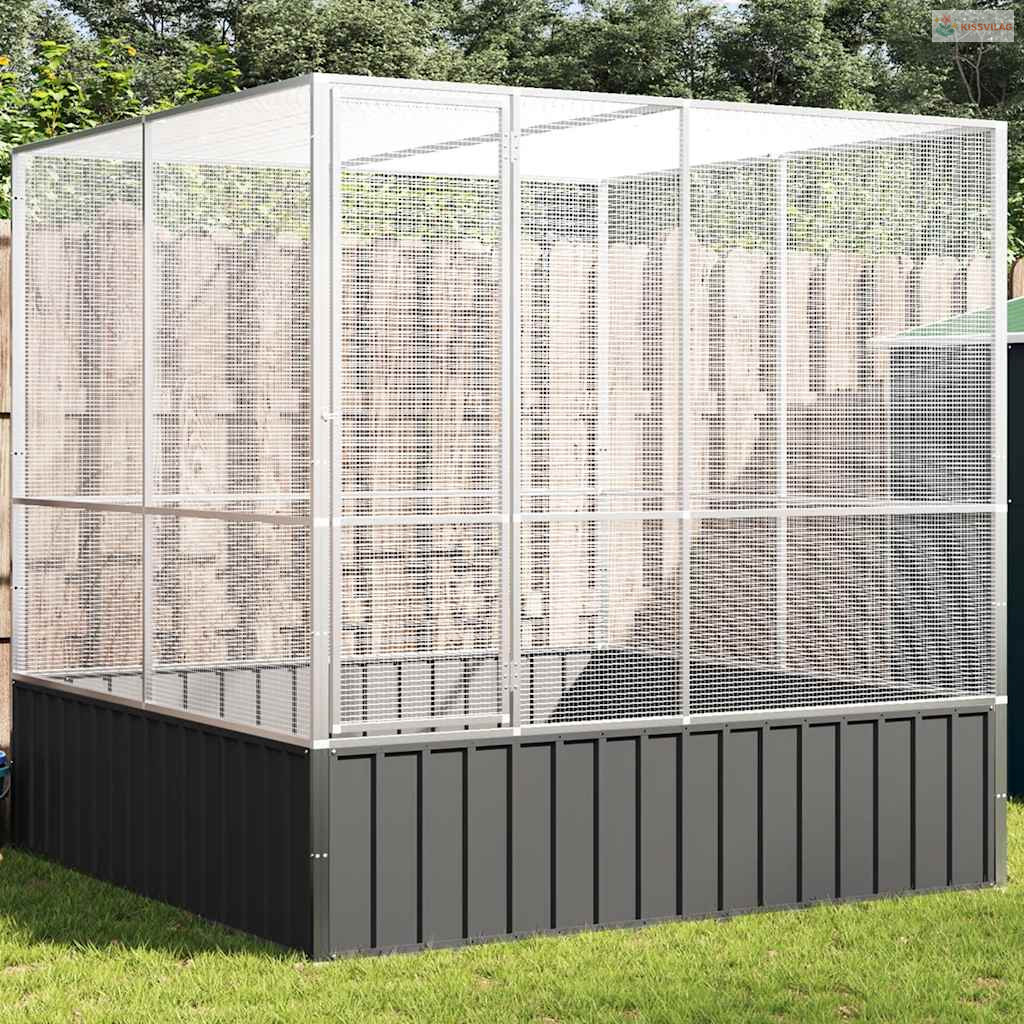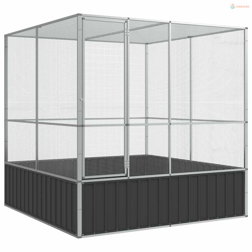 Ezüstszínű acél madárház 211 x 207 x 212 cm