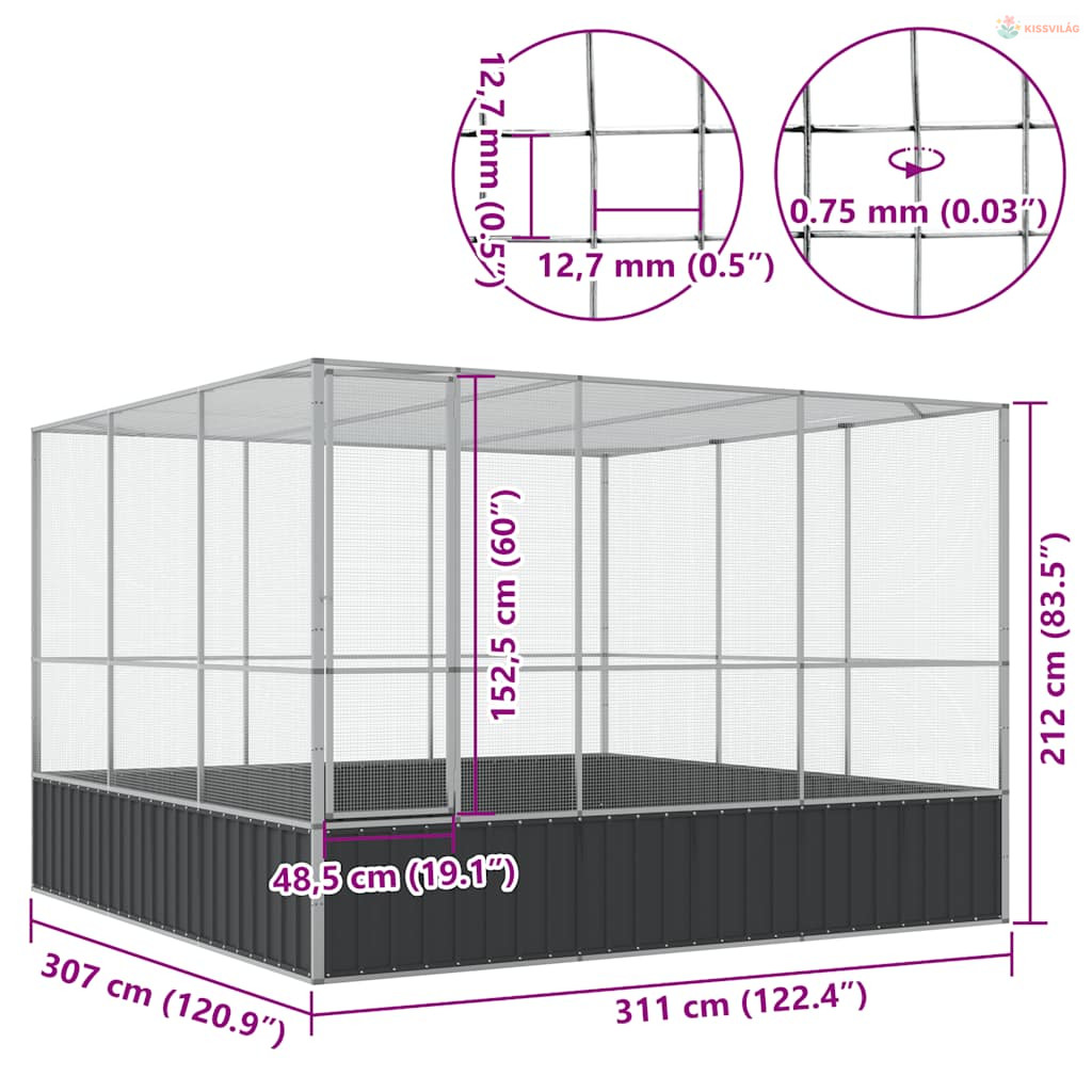 Ezüstszínű acél madárház 311 x 307 x 212 cm
