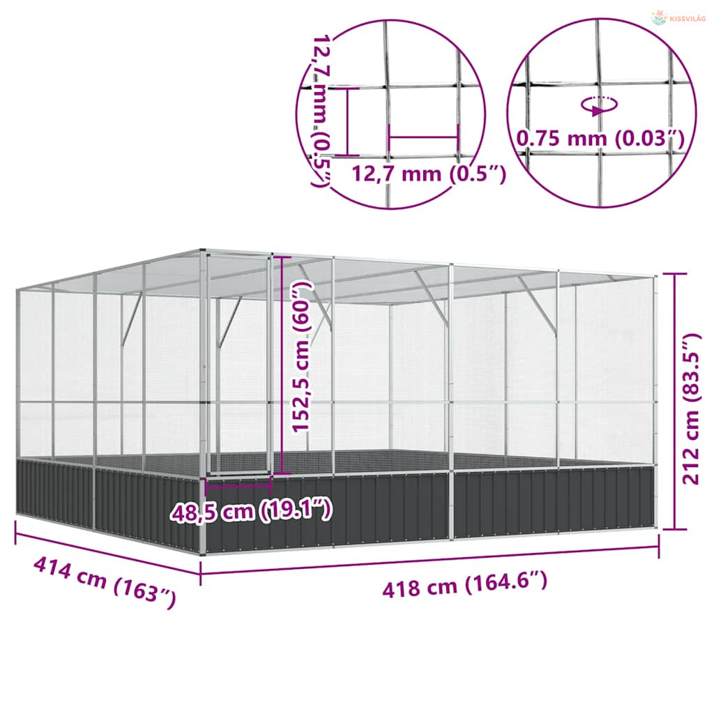 Ezüstszínű acél madárház 418 x 414 x 212 cm
