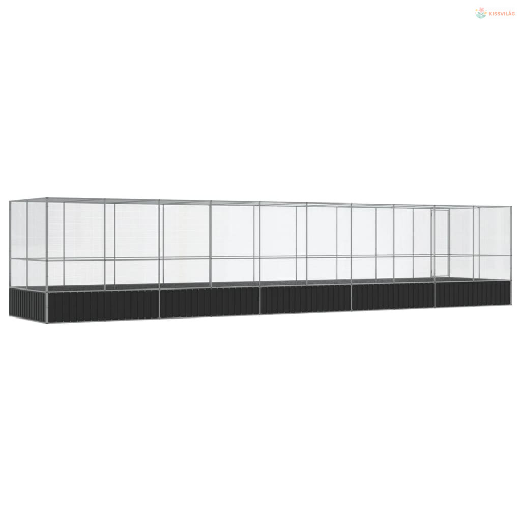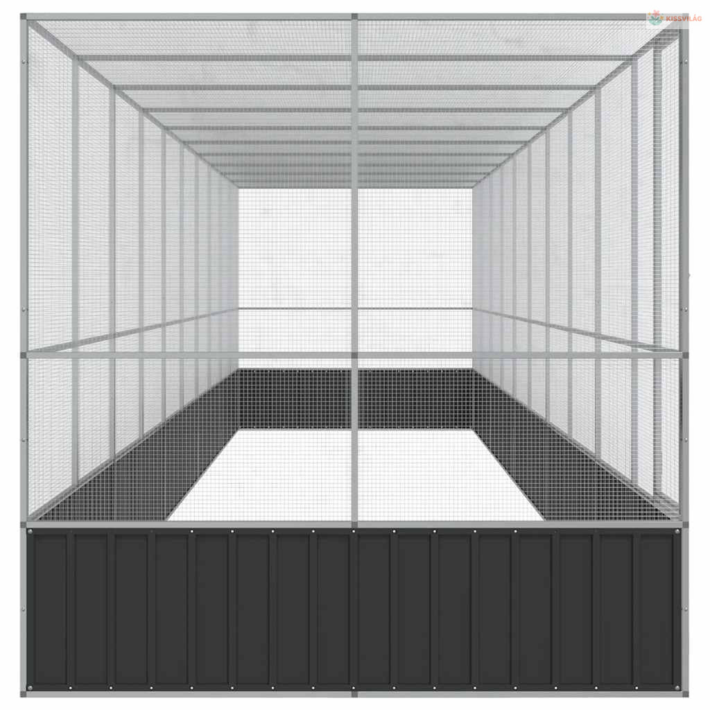 Ezüstszínű acél madárház bővítménnyel 1039x207x212 cm