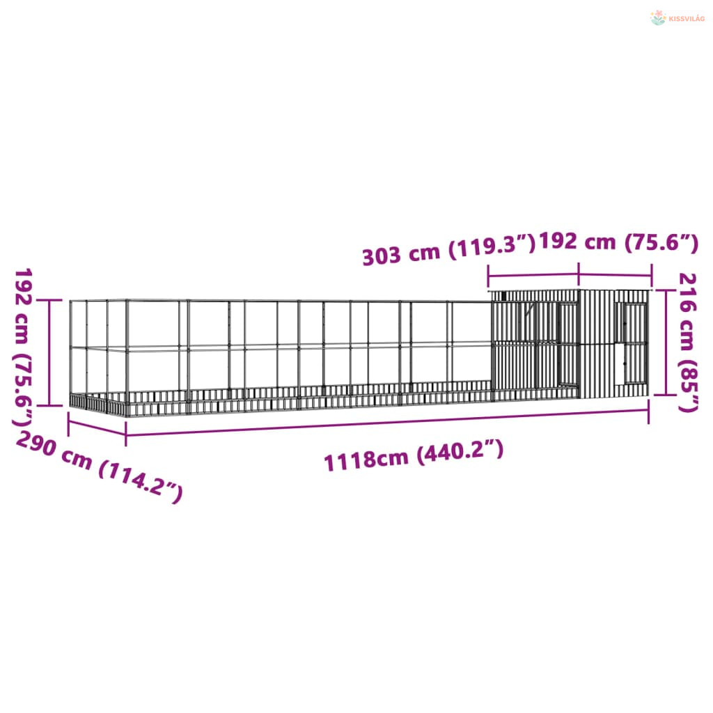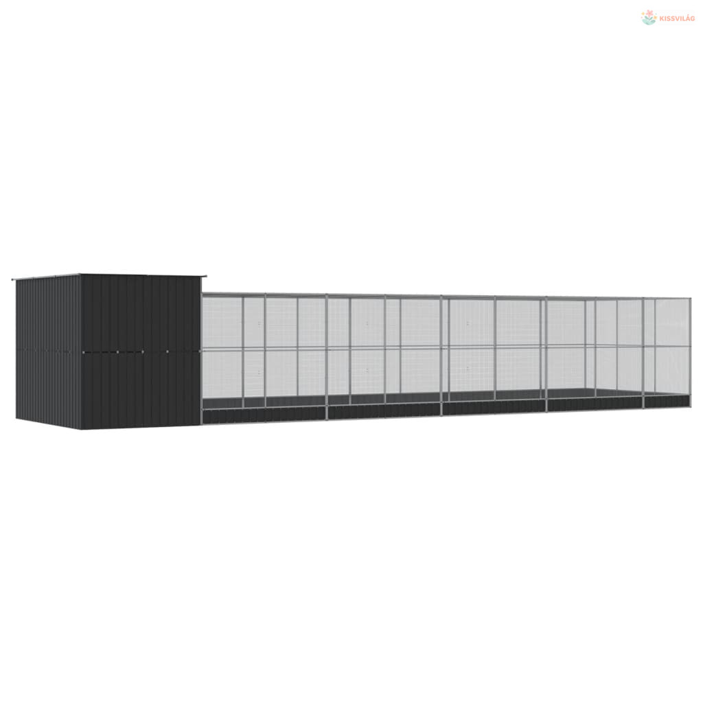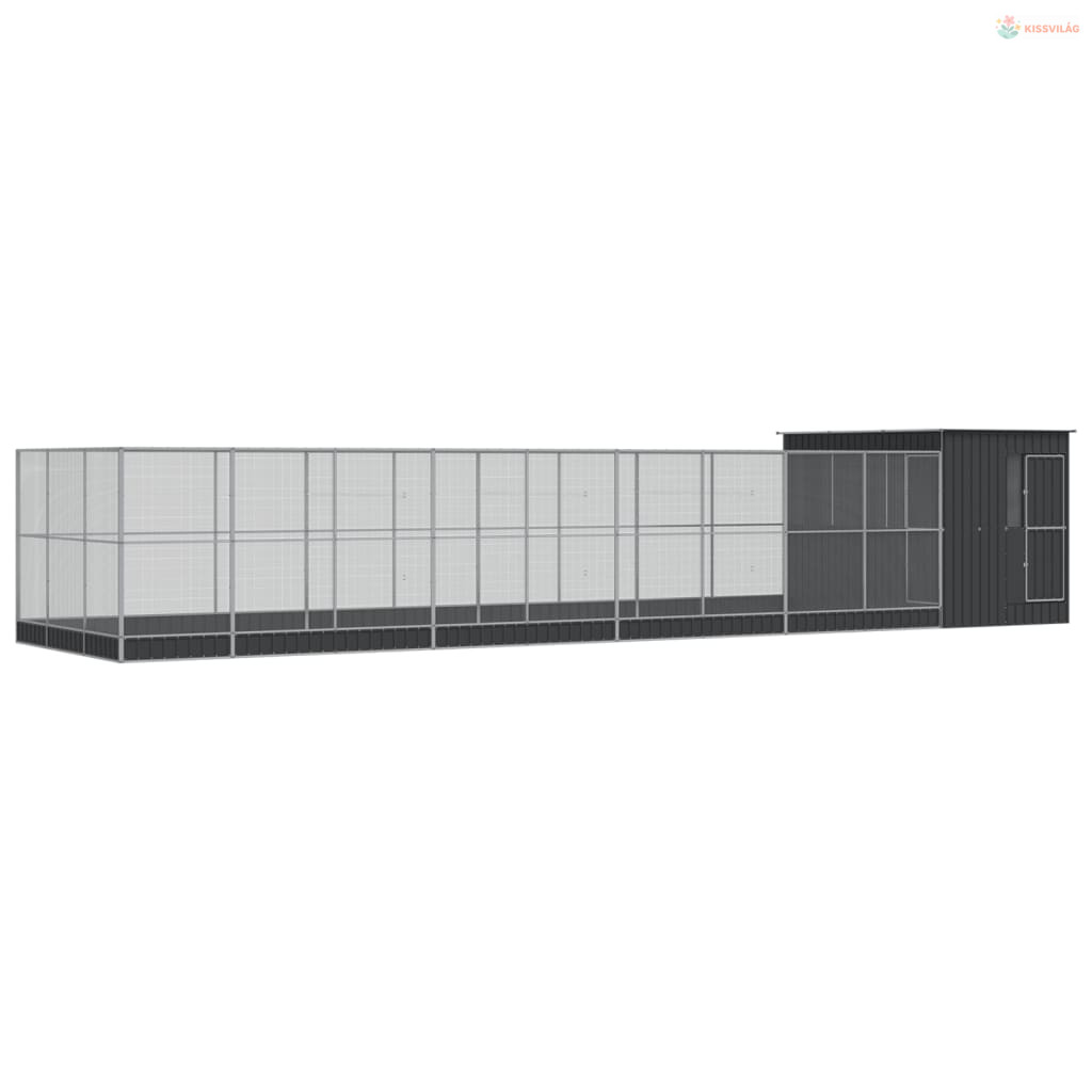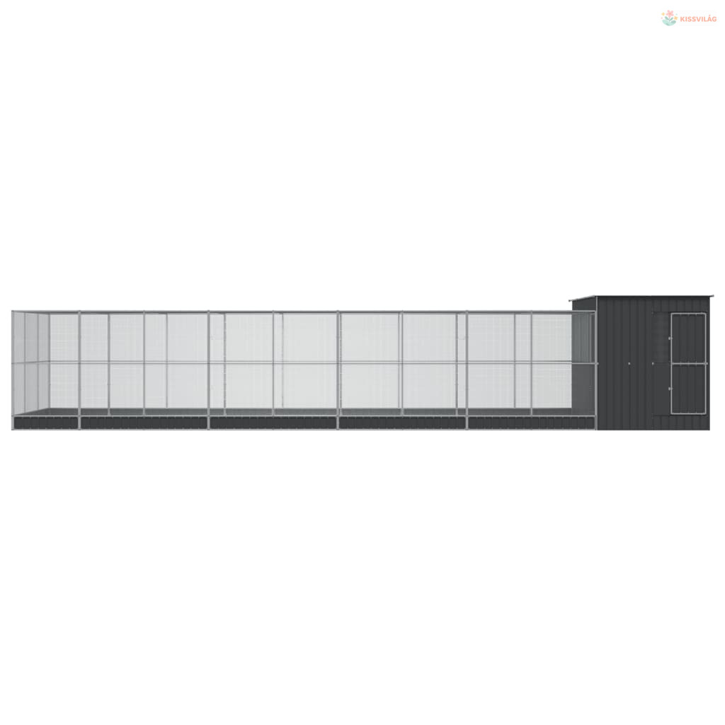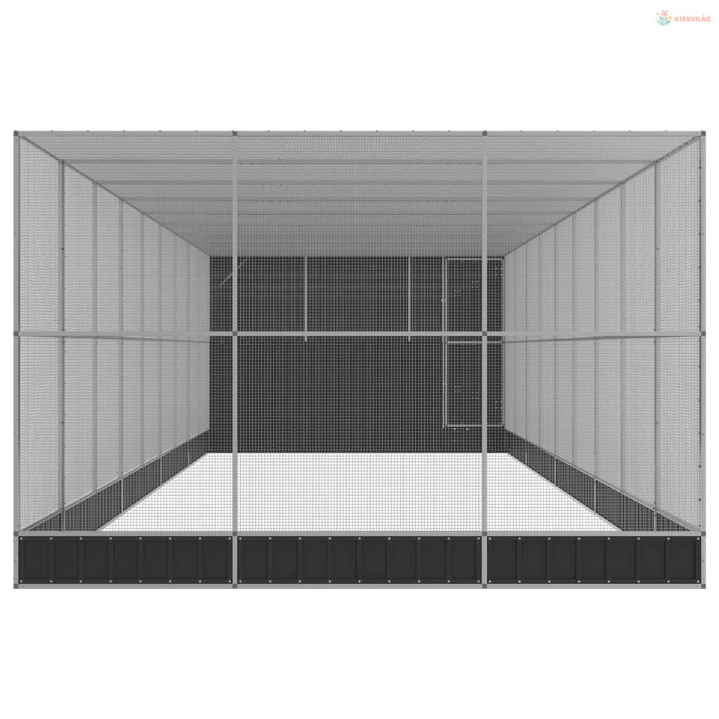 Ezüstszínű acél madárház bővítménnyel 1118 x 303 x 216 cm