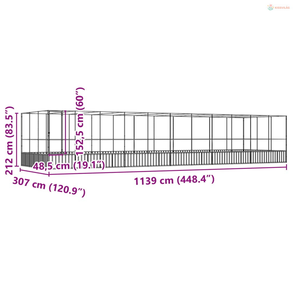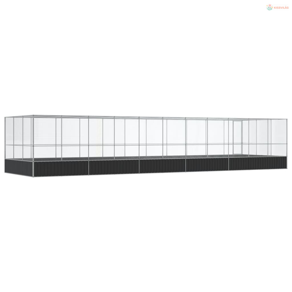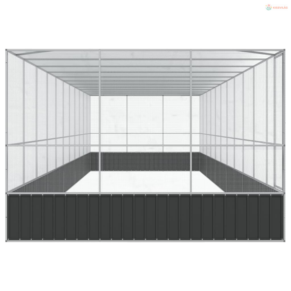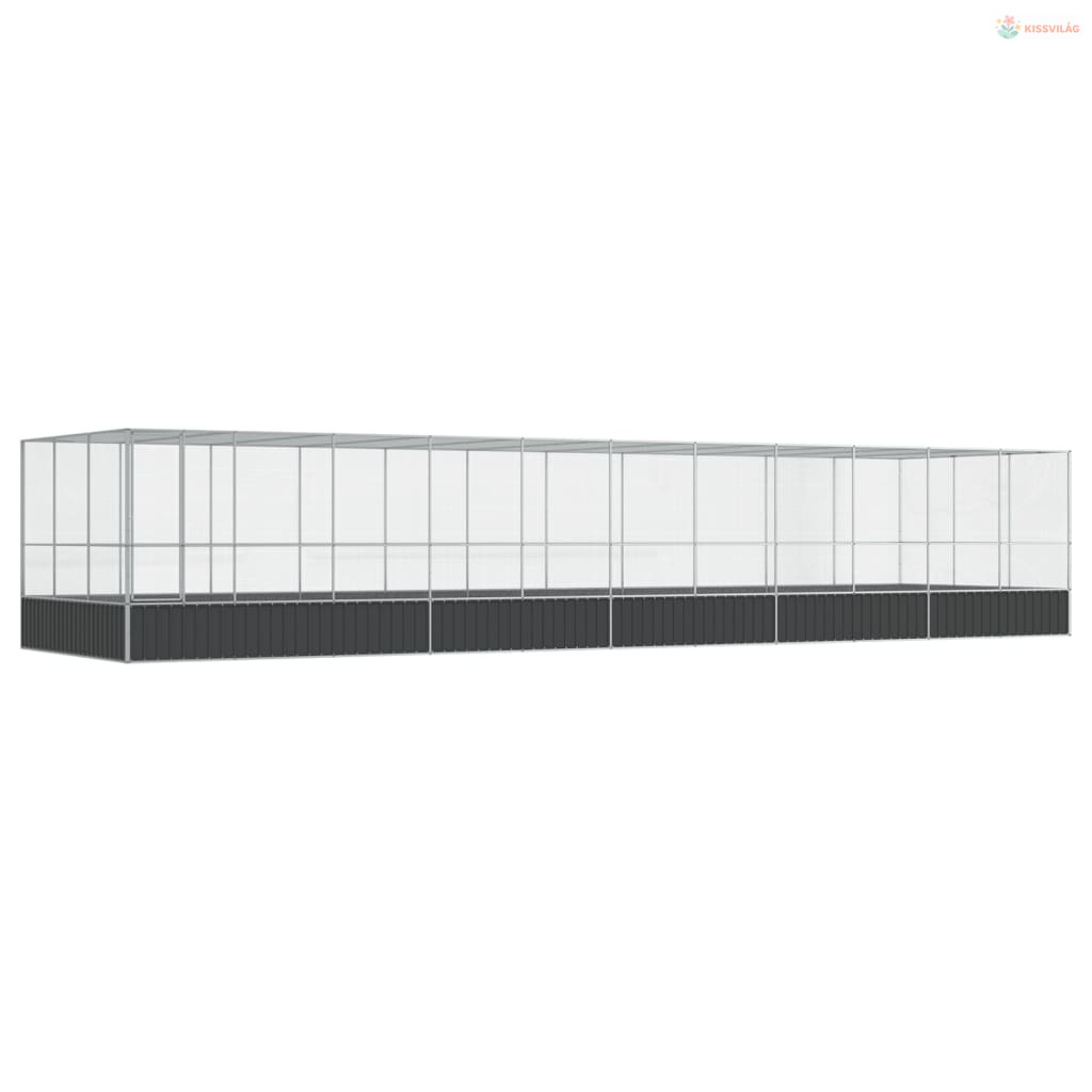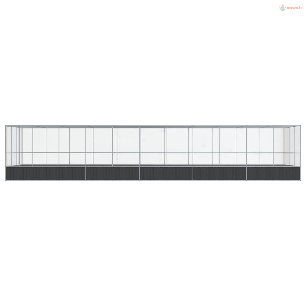 Ezüstszínű acél madárház bővítménnyel 1139x307x212 cm