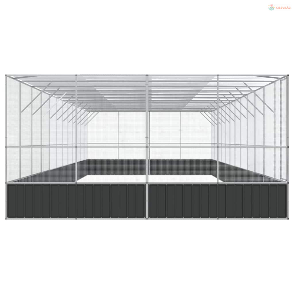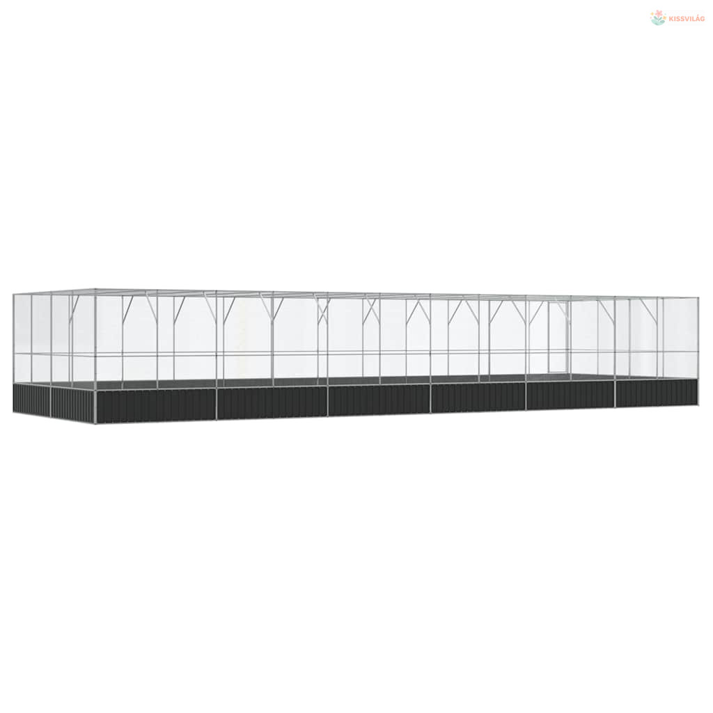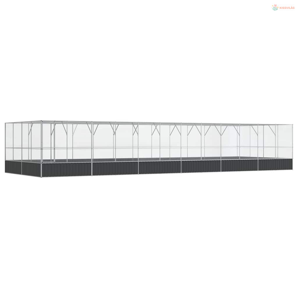 Ezüstszínű acél madárház bővítménnyel 1246x414x212 cm