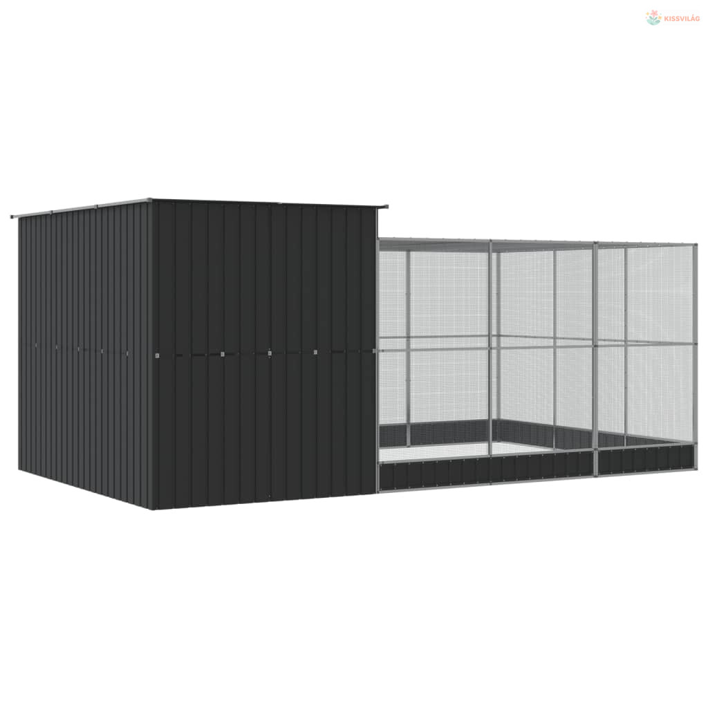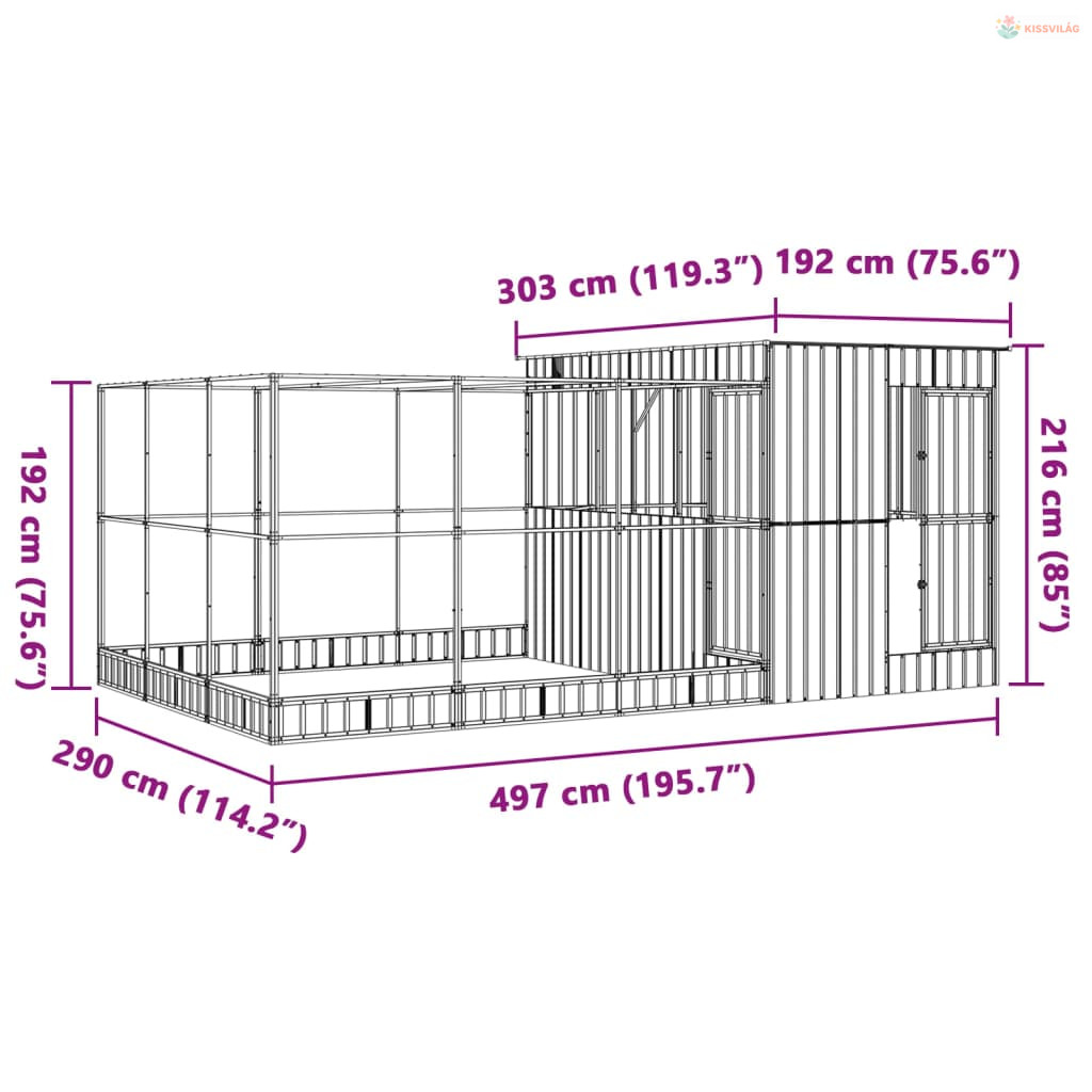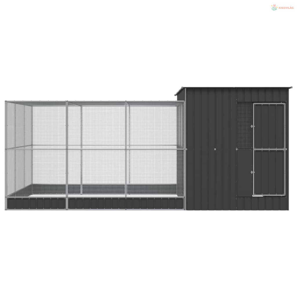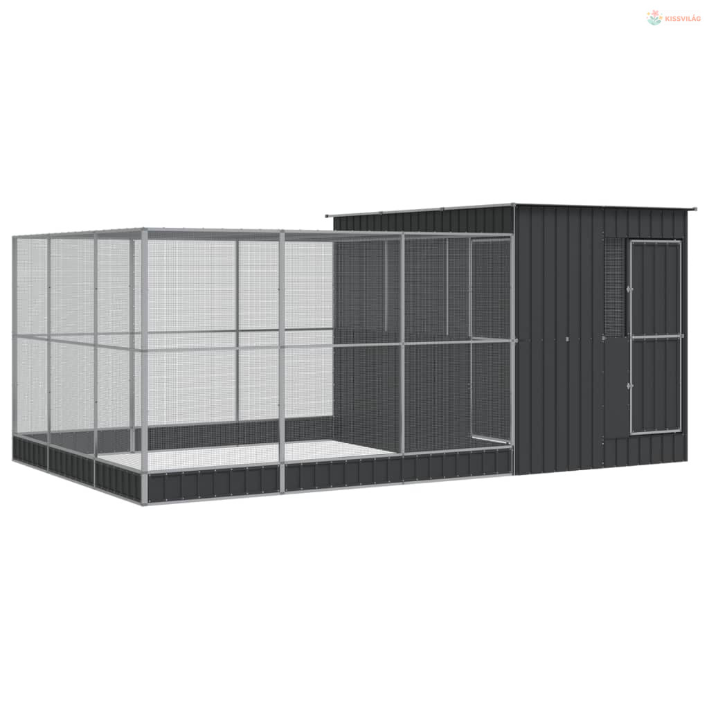 Ezüstszínű acél madárház bővítménnyel 497 x 303 x 216 cm