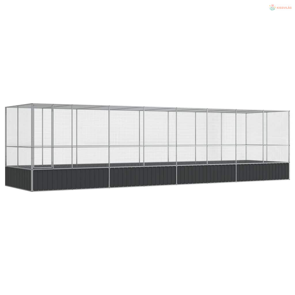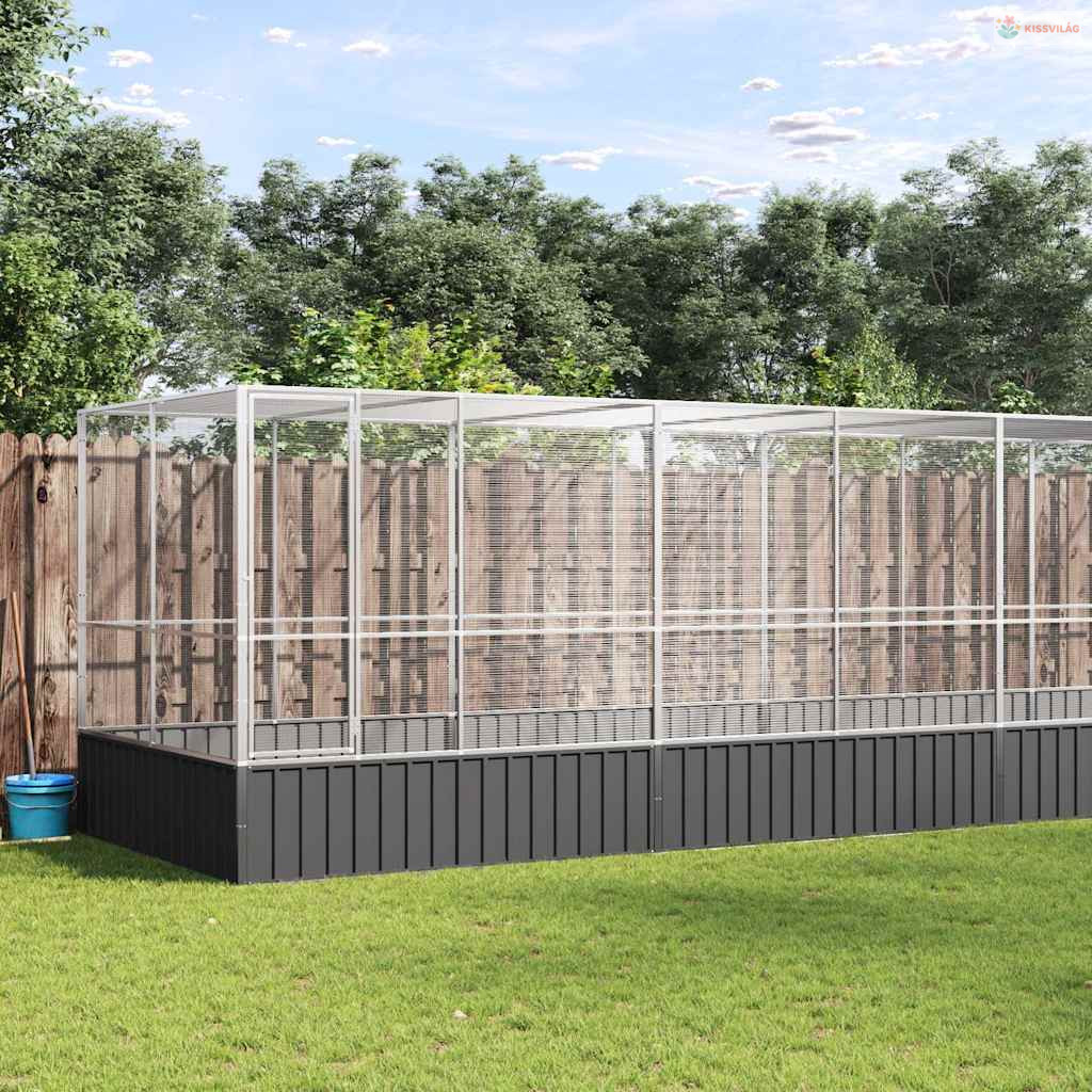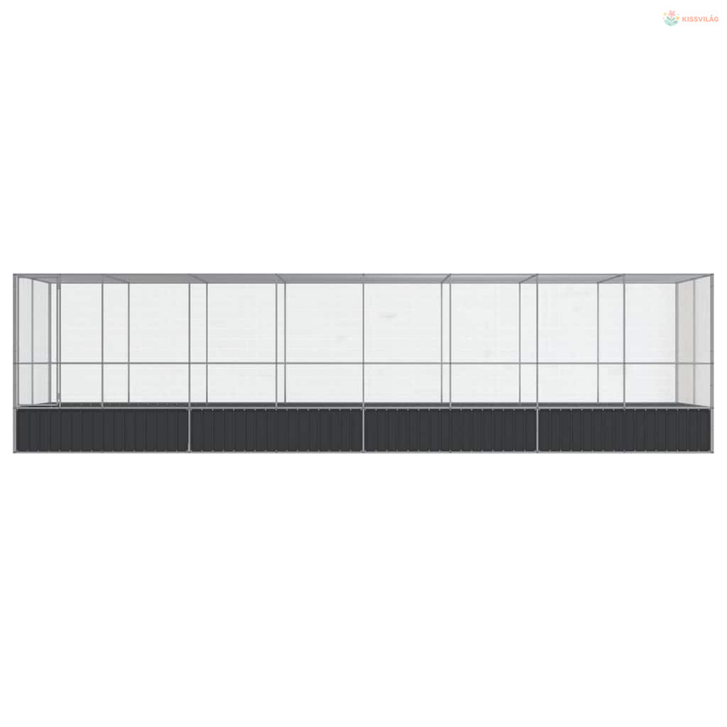 Ezüstszínű acél madárház bővítménnyel 832x207x212 cm