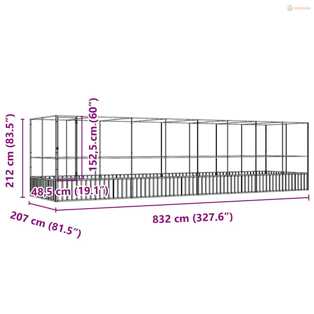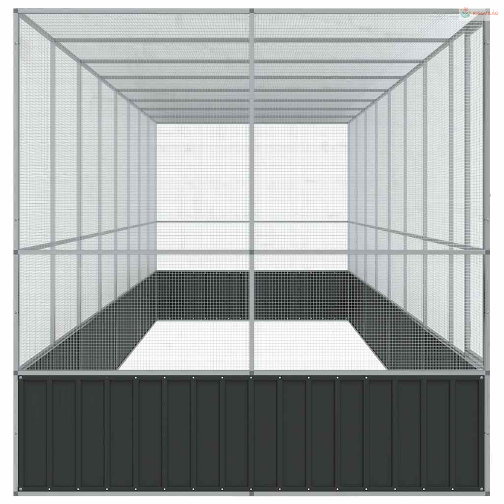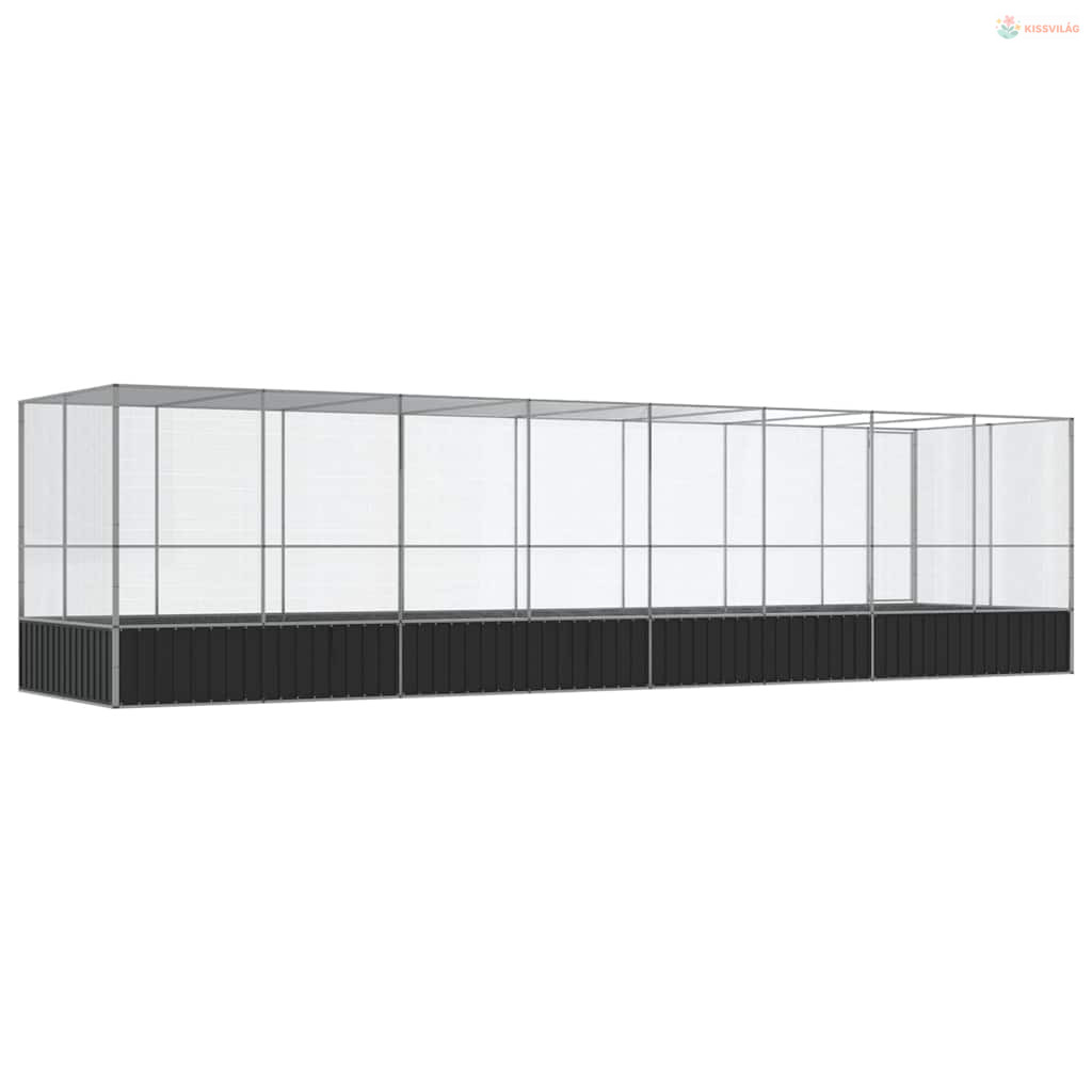 Ezüstszínű acél madárház bővítménnyel 832x207x212 cm