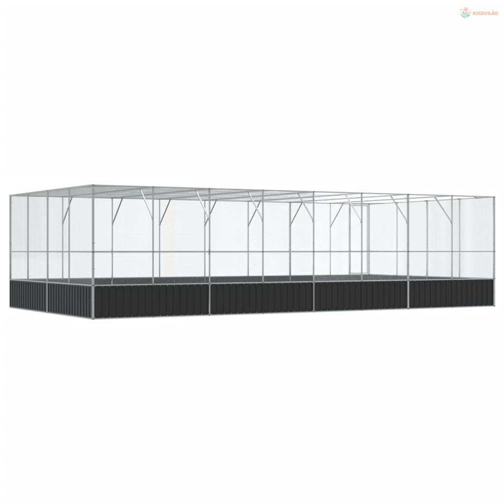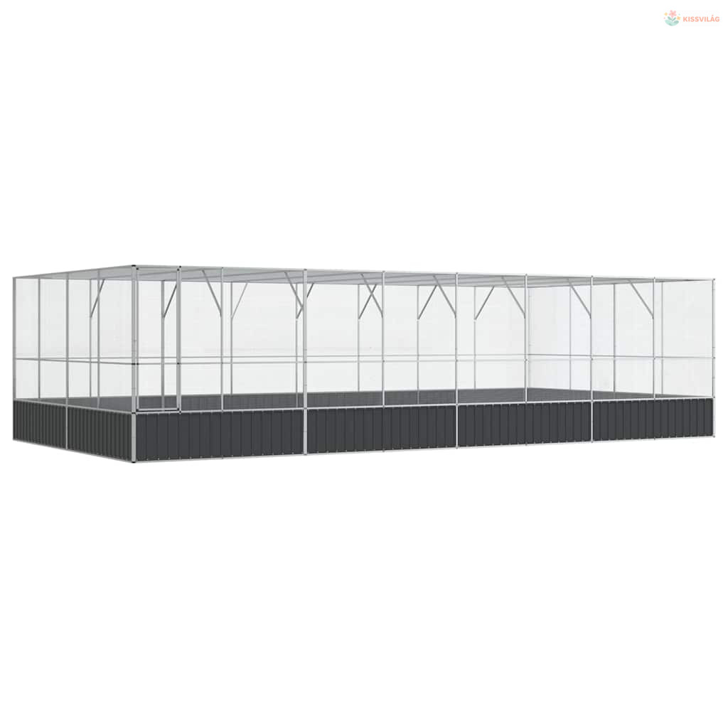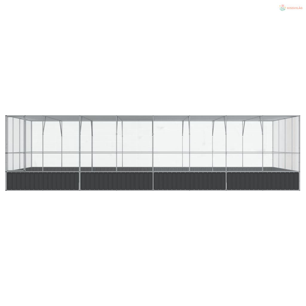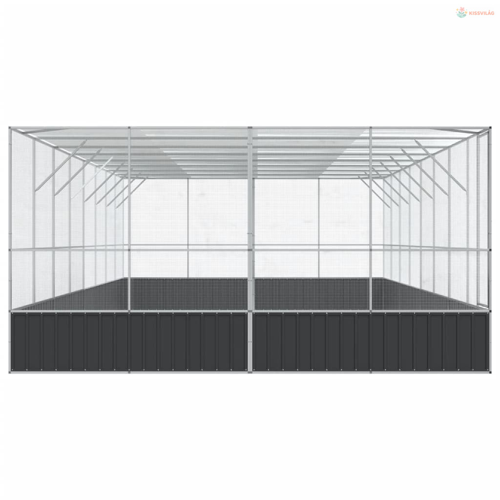 Ezüstszínű acél madárház bővítménnyel 832x414x212 cm