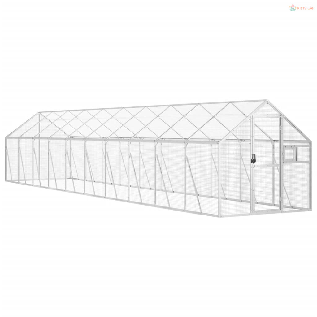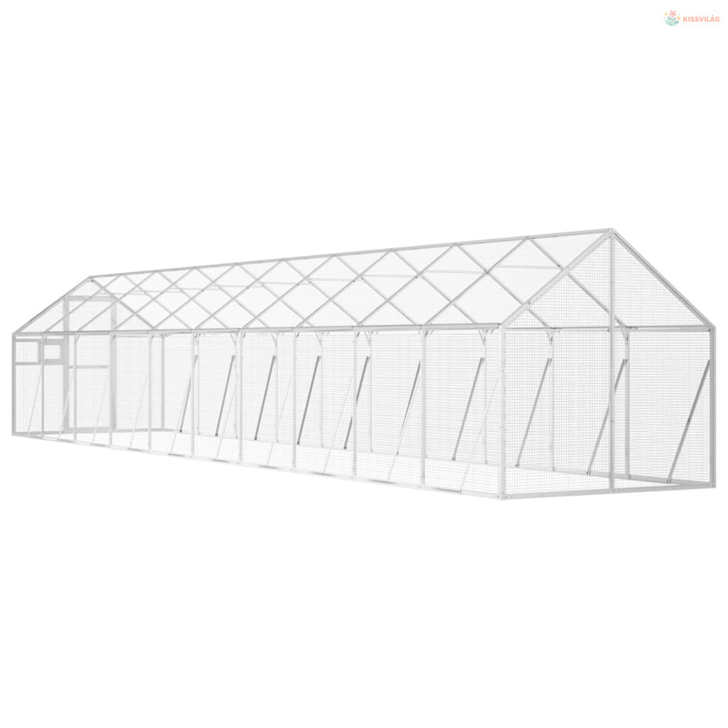 Ezüstszínű alumínium madárház 1,79 x 10 x 1,85 m