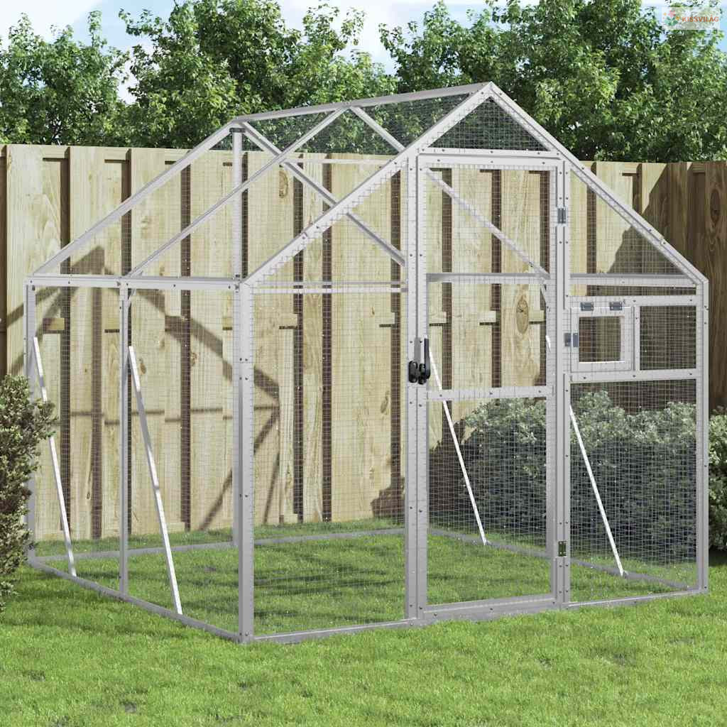 Ezüstszínű alumínium madárház 1,79 x 2 x 1,85 m