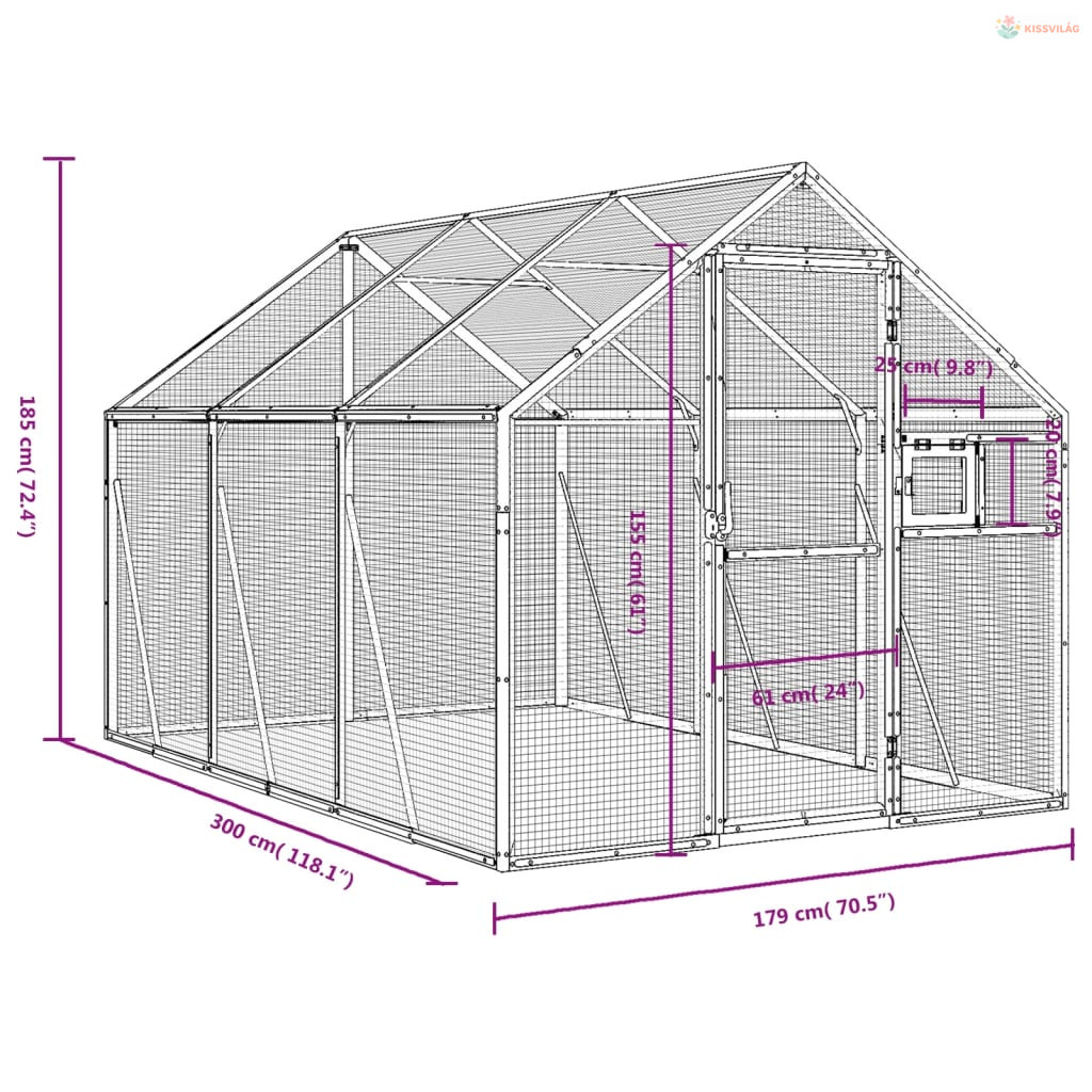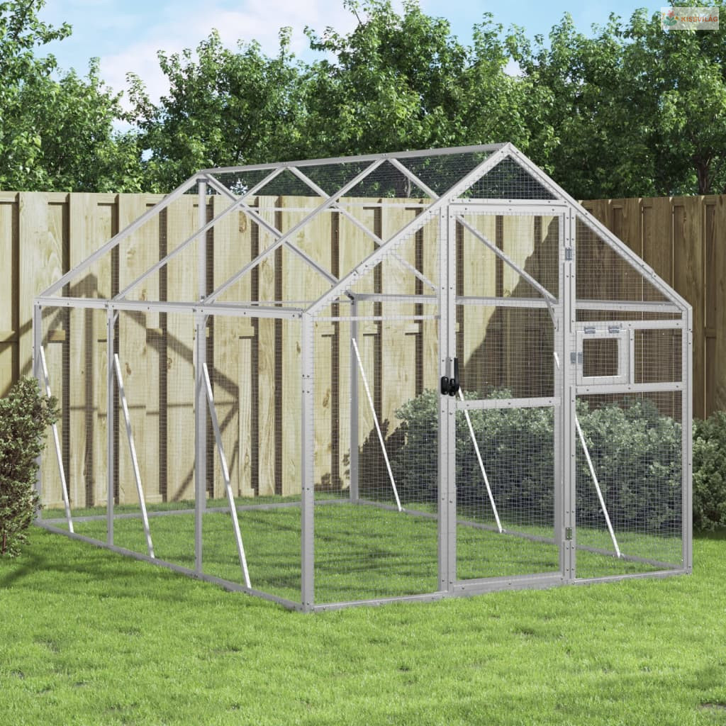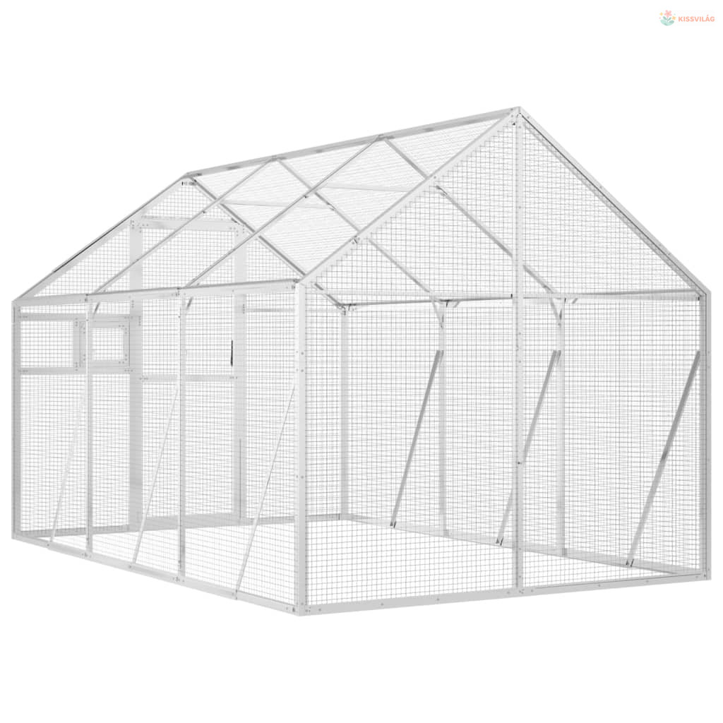 Ezüstszínű alumínium madárház 1,79 x 3 x 1,85 m
