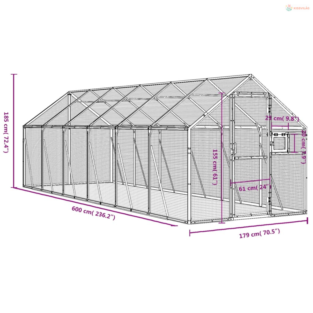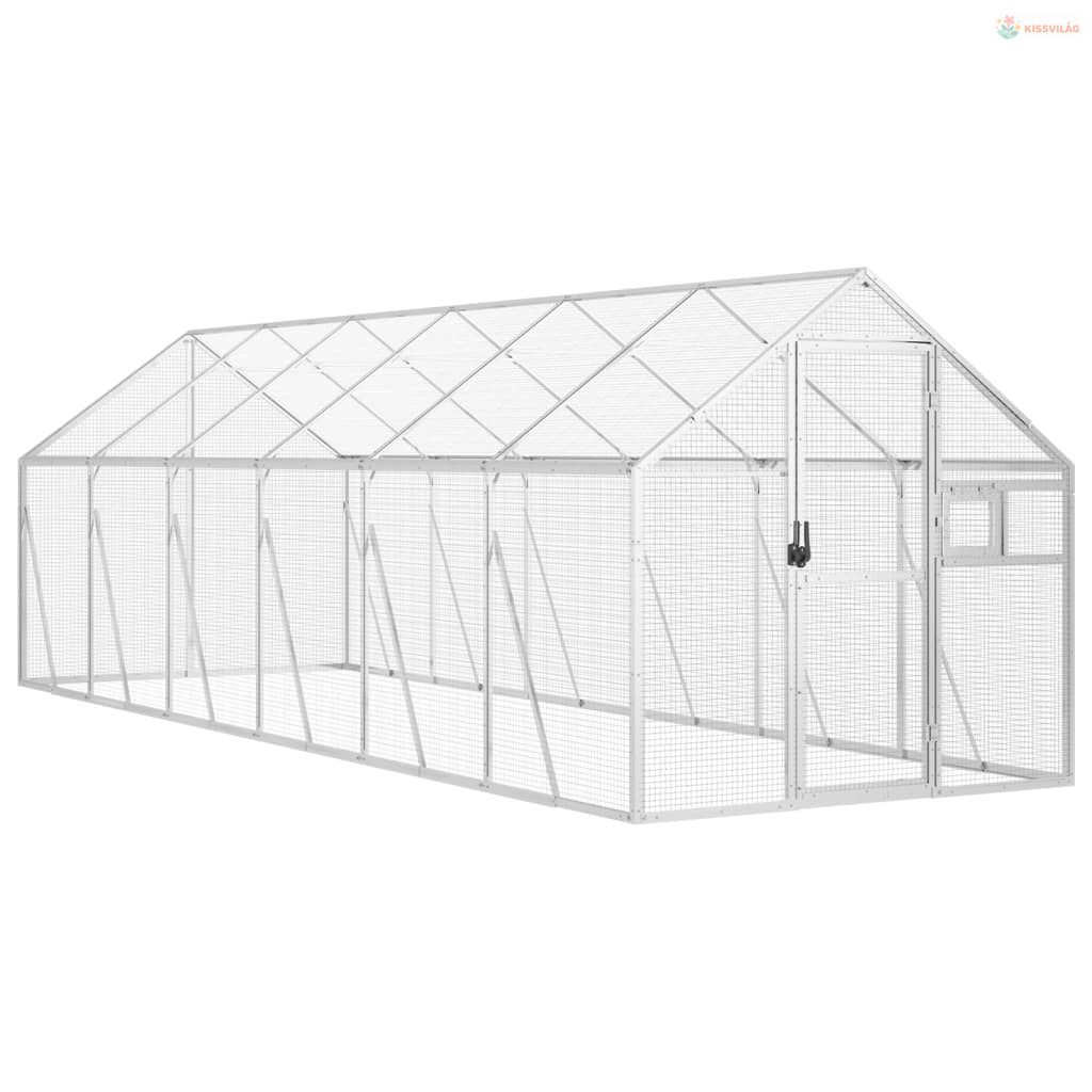 Ezüstszínű alumínium madárház 1,79 x 6 x 1,85 m