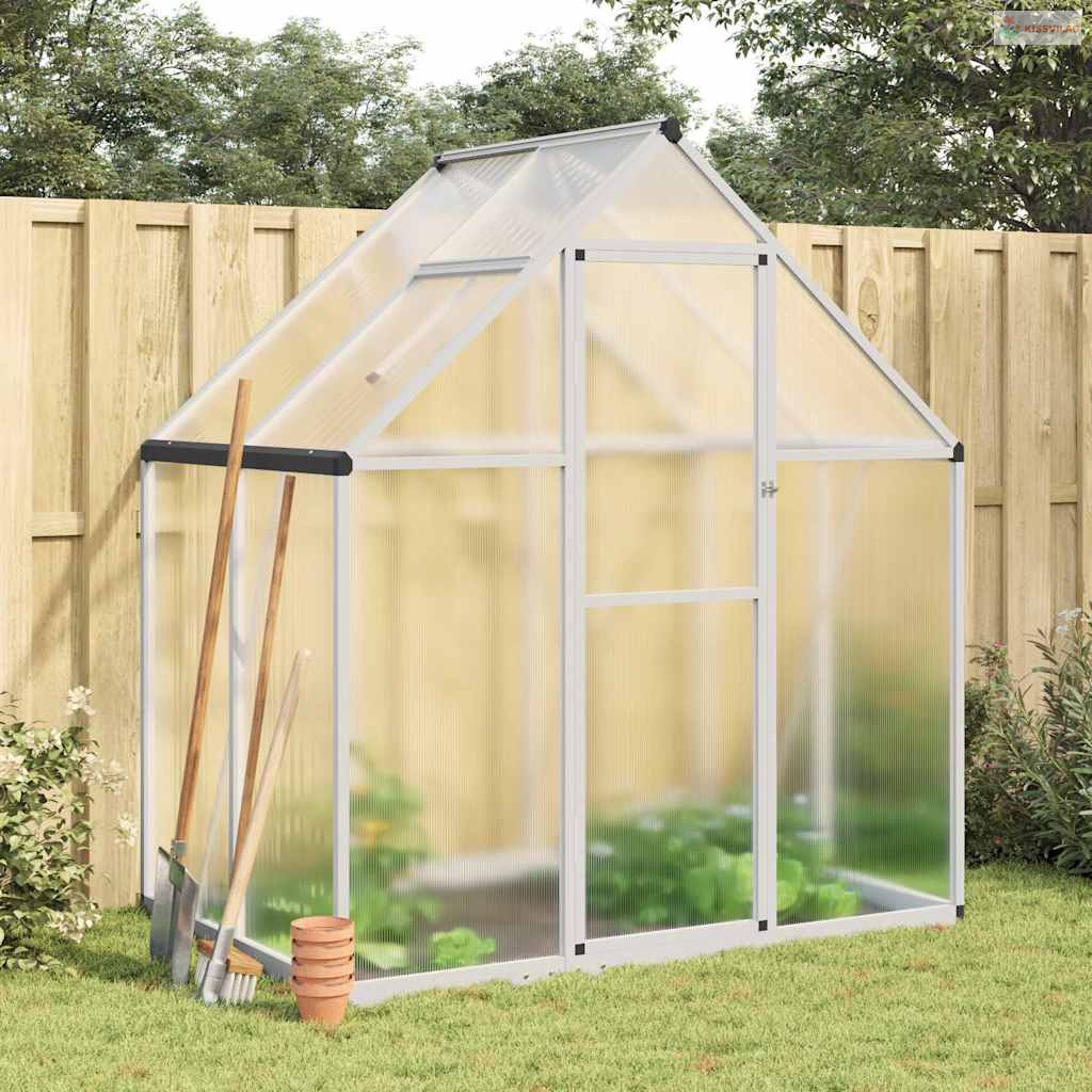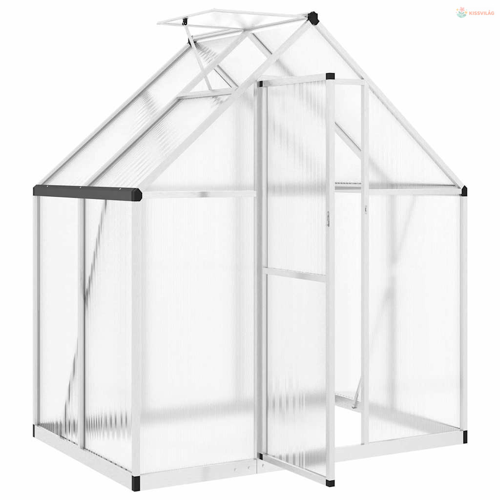 Ezüstszínű alumínium melegház alapvázzal 169 x 114 x 195 cm