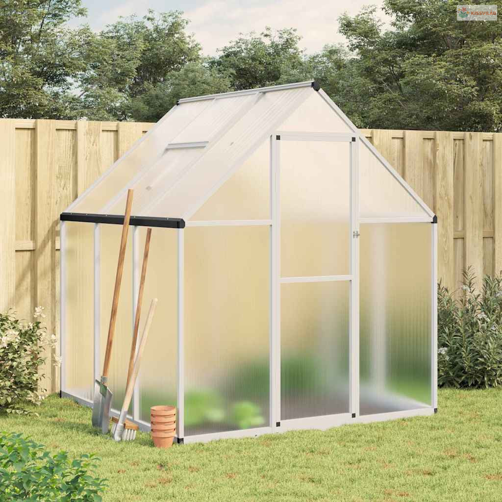 Ezüstszínű alumínium melegház alapvázzal 169 x 169 x 202 cm
