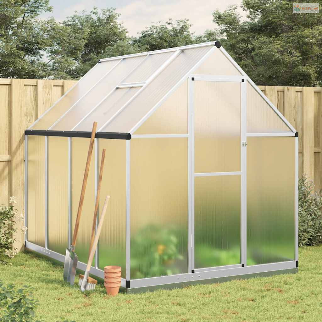 • Időjárásálló és masszív anyag: Az üvegház váza rozsda- és időjárásálló alumíniumból készült a nagy szélállóság és stabilitás érdekében. A lapok UV-álló polikarbonátból készültek, amelyek könnyűek, tartósak, és könnyen karbantarthatók, ellenállnak a szélnek és a hónak.