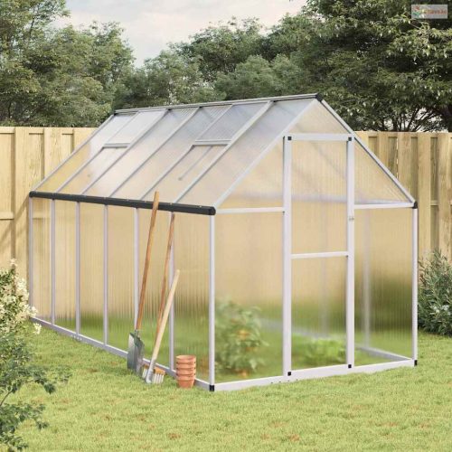 • Időjárásálló és masszív anyag: Az üvegház váza rozsda- és időjárásálló alumíniumból készült a nagy szélállóság és stabilitás érdekében. A lapok UV-álló polikarbonátból készültek, amelyek könnyűek, tartósak, és könnyen karbantarthatók, ellenállnak a szélnek és a hónak.