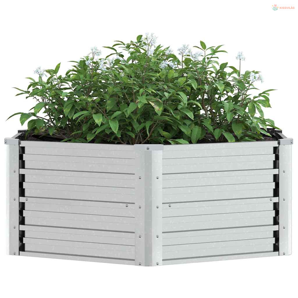 Ezüstszínű horganyzott acél kerti magaságyás 129 x 45 cm
