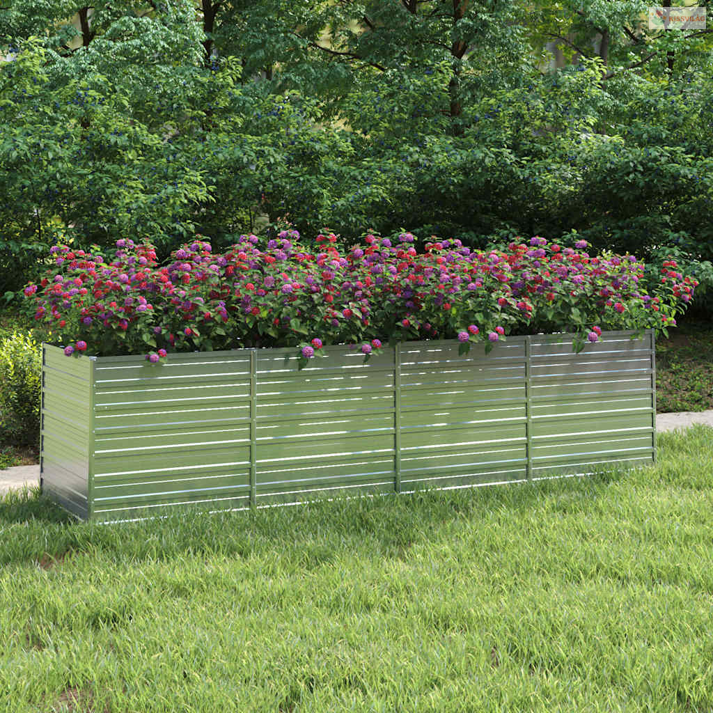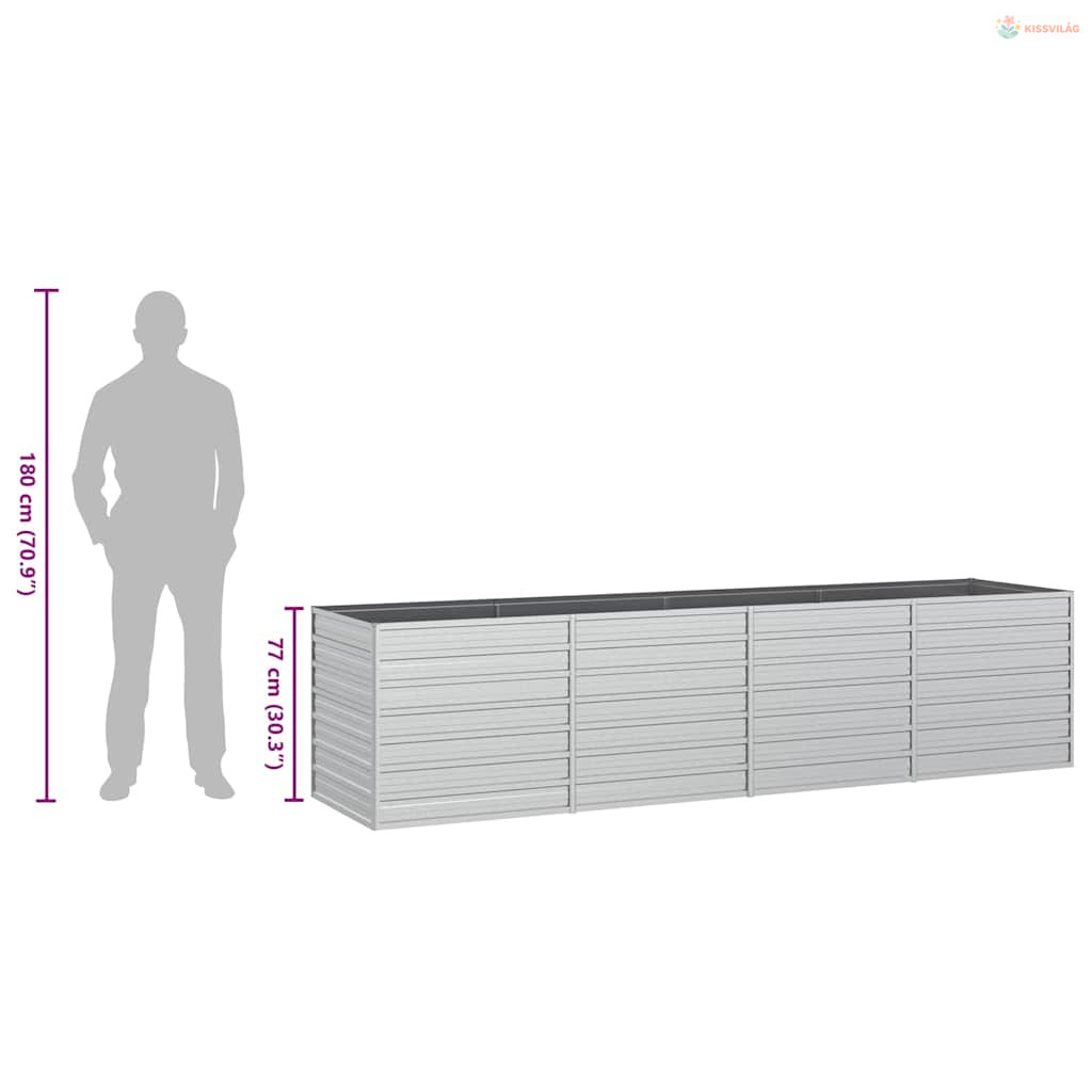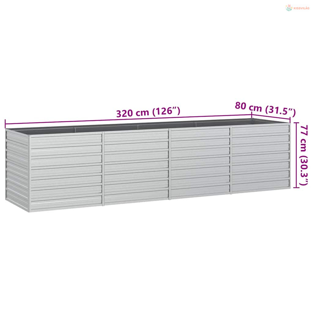 Ezüstszínű horganyzott acél kerti magaságyás 320 x 80 x 77 cm