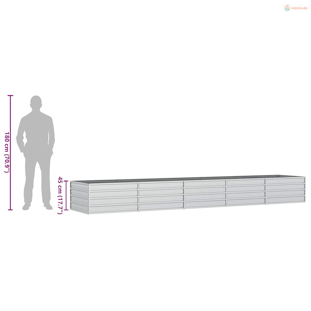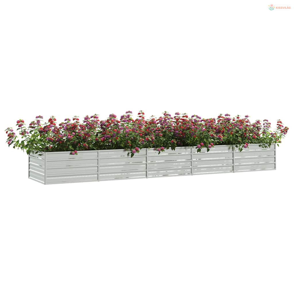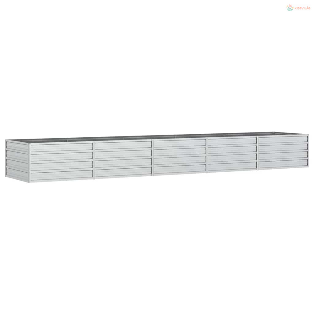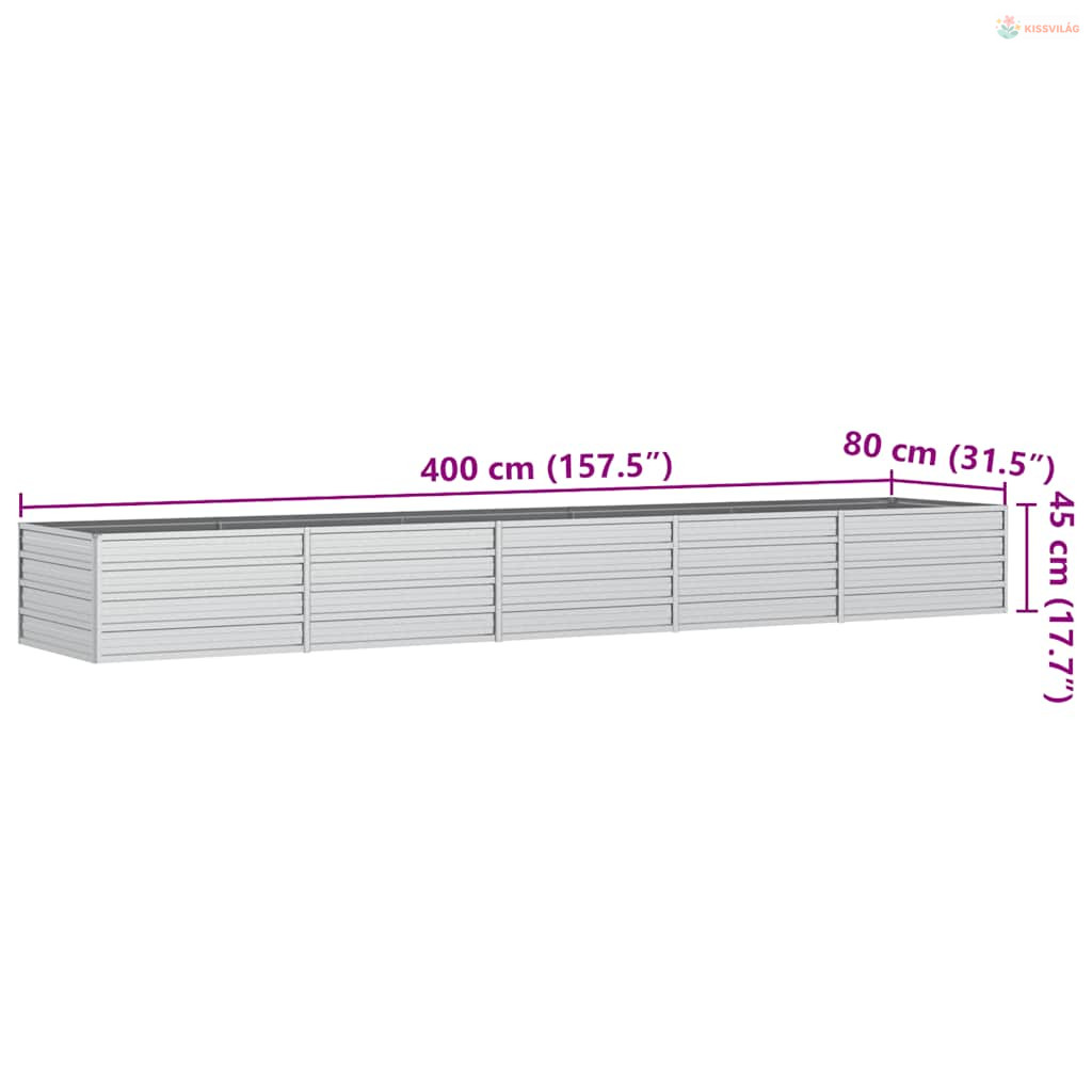 Ezüstszínű horganyzott acél kerti magaságyás 400 x 80 x 45 cm