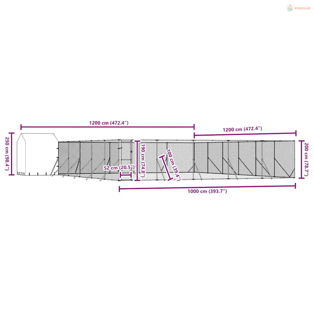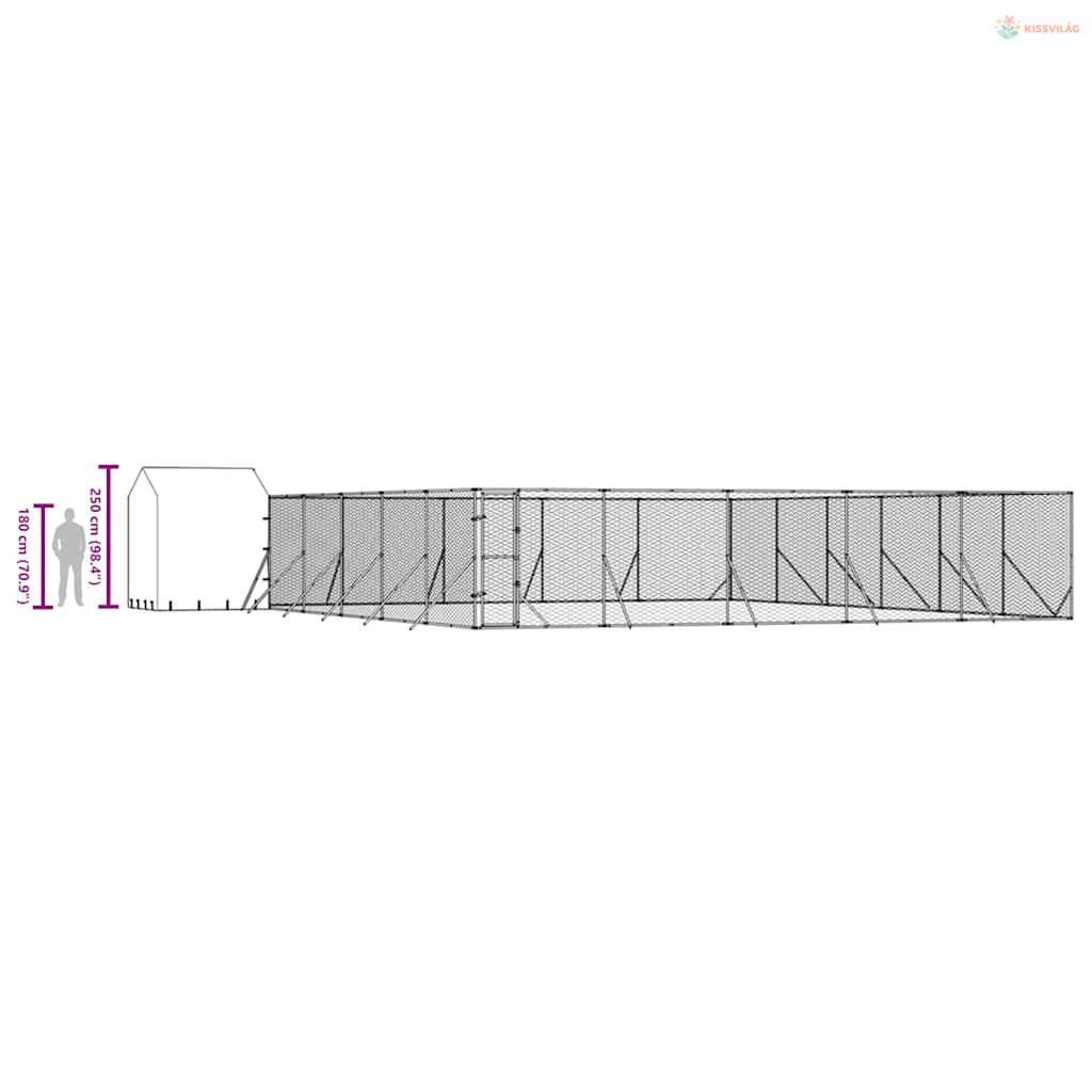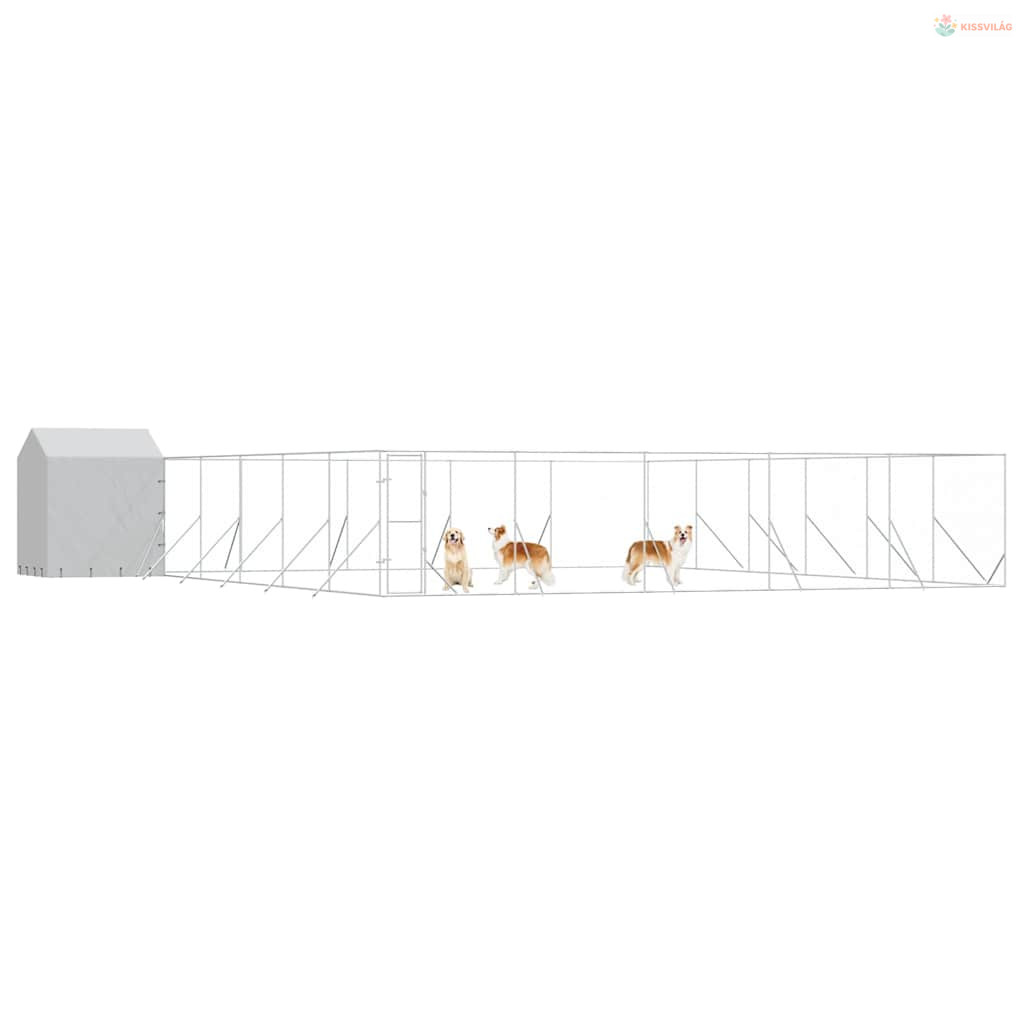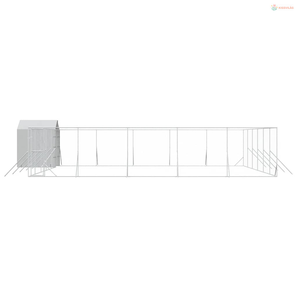 Ezüstszínű horganyzott acél kutyakennel tetővel 12x12x2,5 m