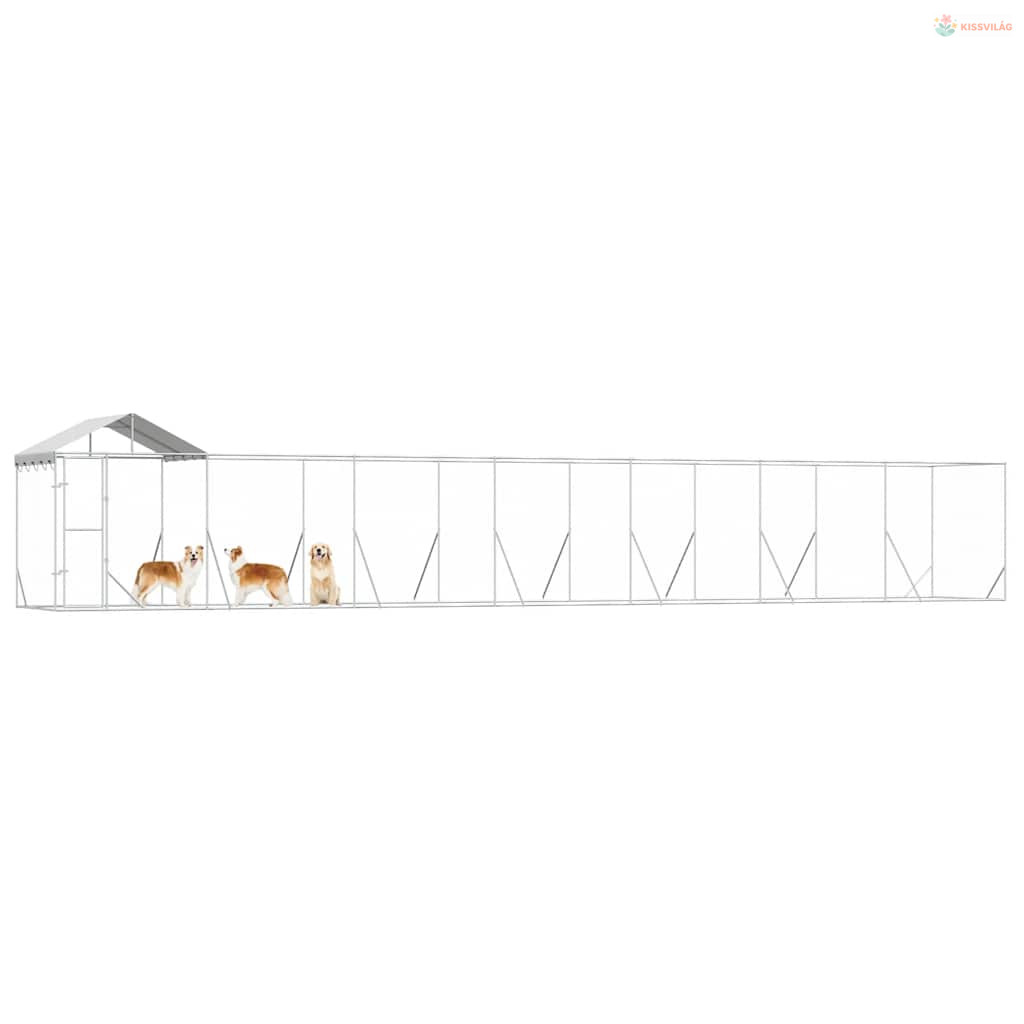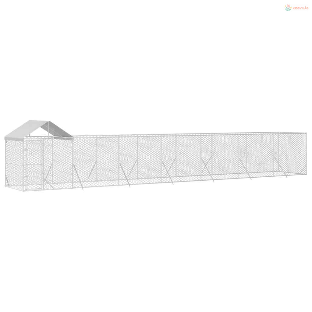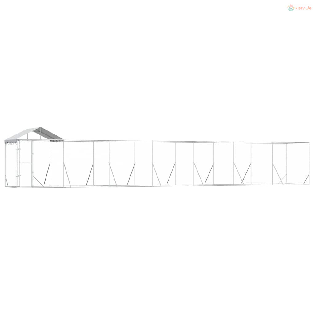 Ezüstszínű horganyzott acél kutyakennel tetővel 14x2x2,5 m