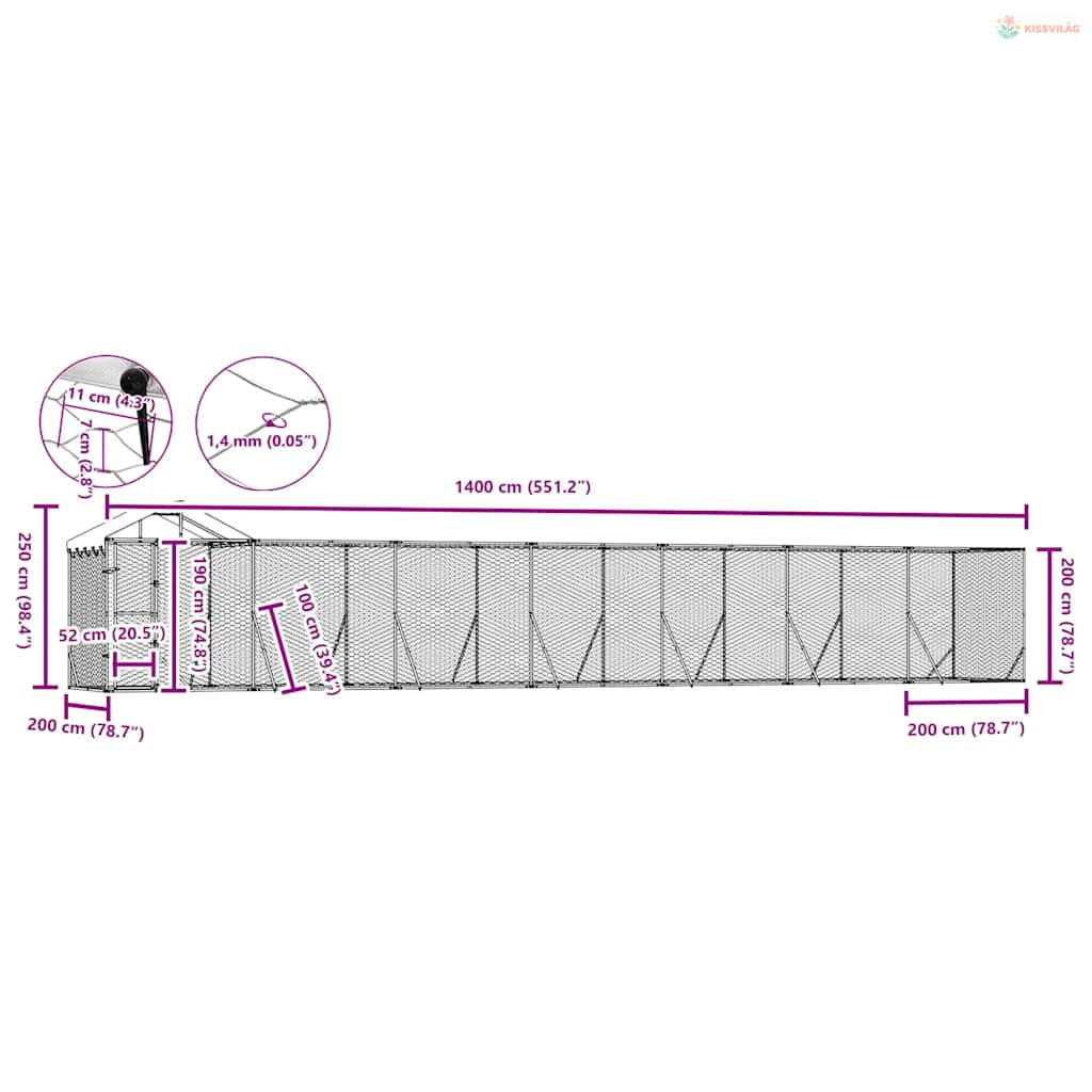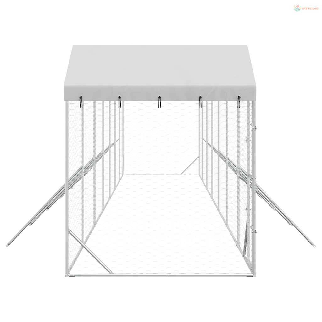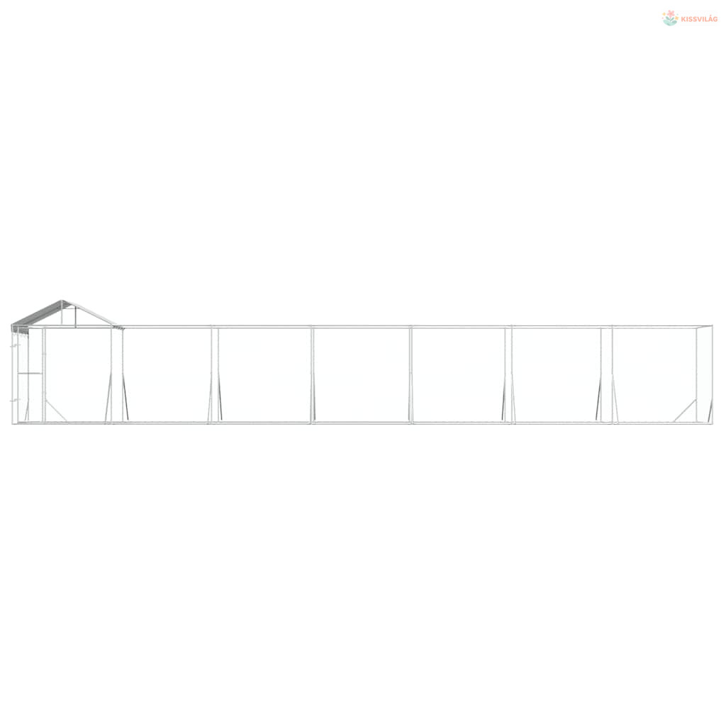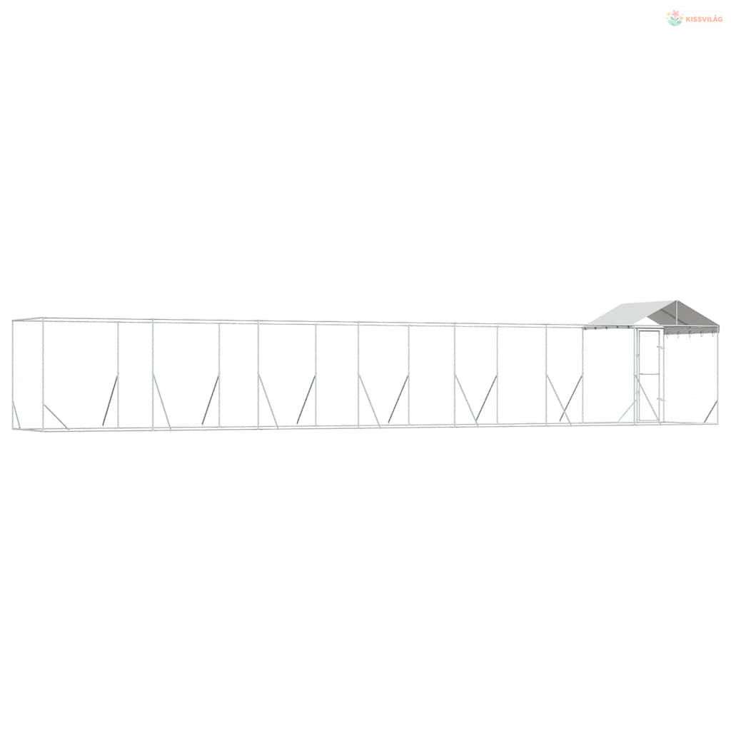 Ezüstszínű horganyzott acél kutyakennel tetővel 14x2x2,5 m