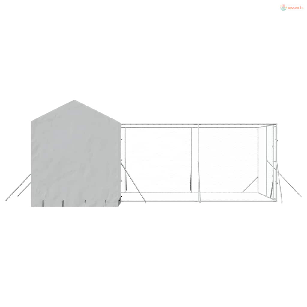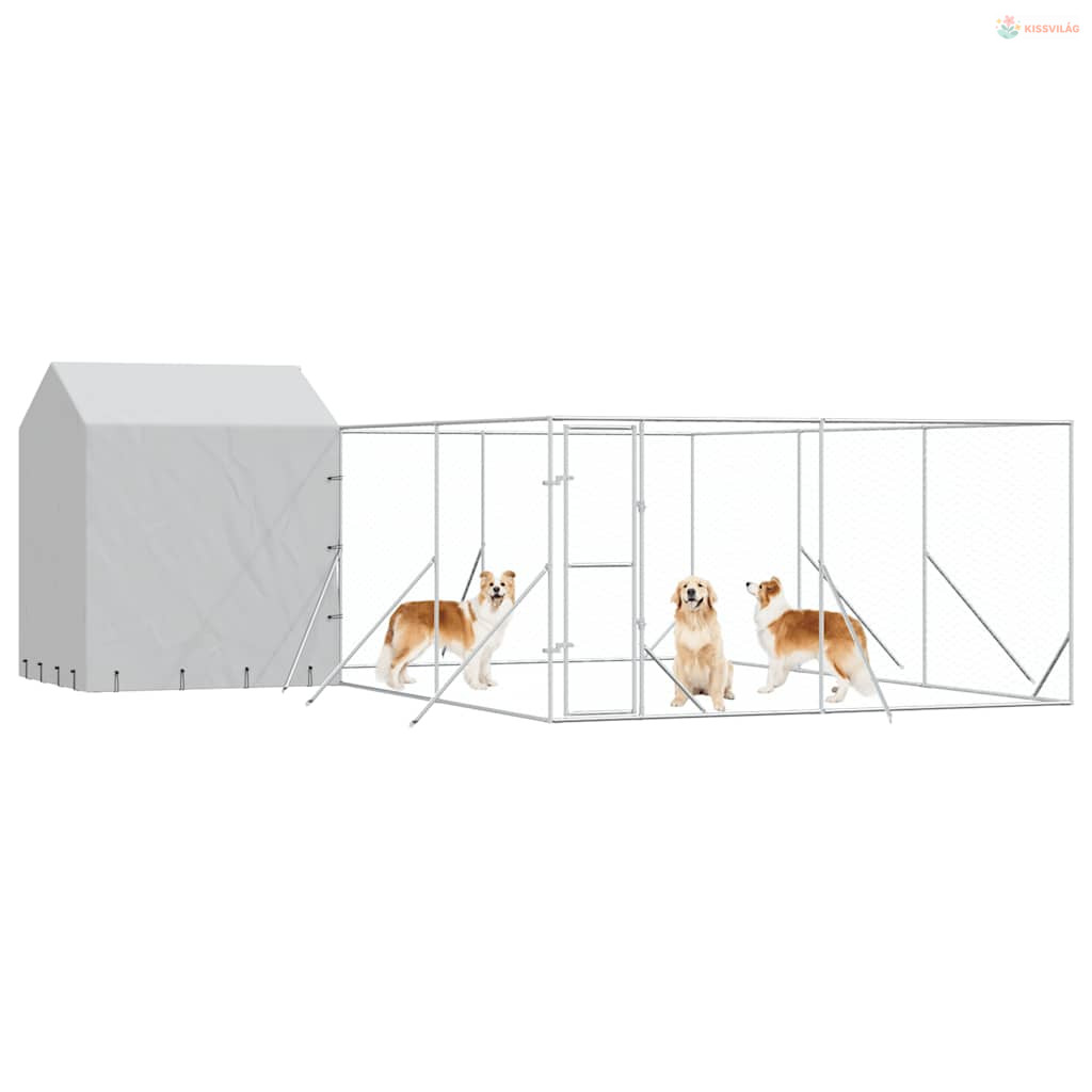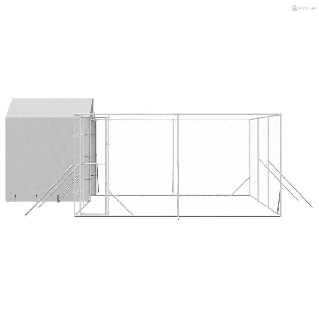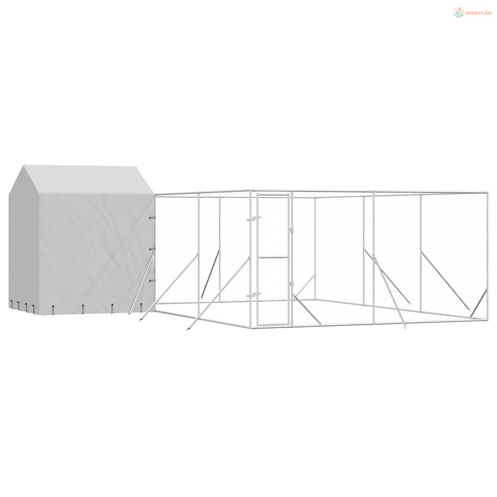 Ezüstszínű horganyzott acél kutyakennel tetővel 6x6x2,5 m