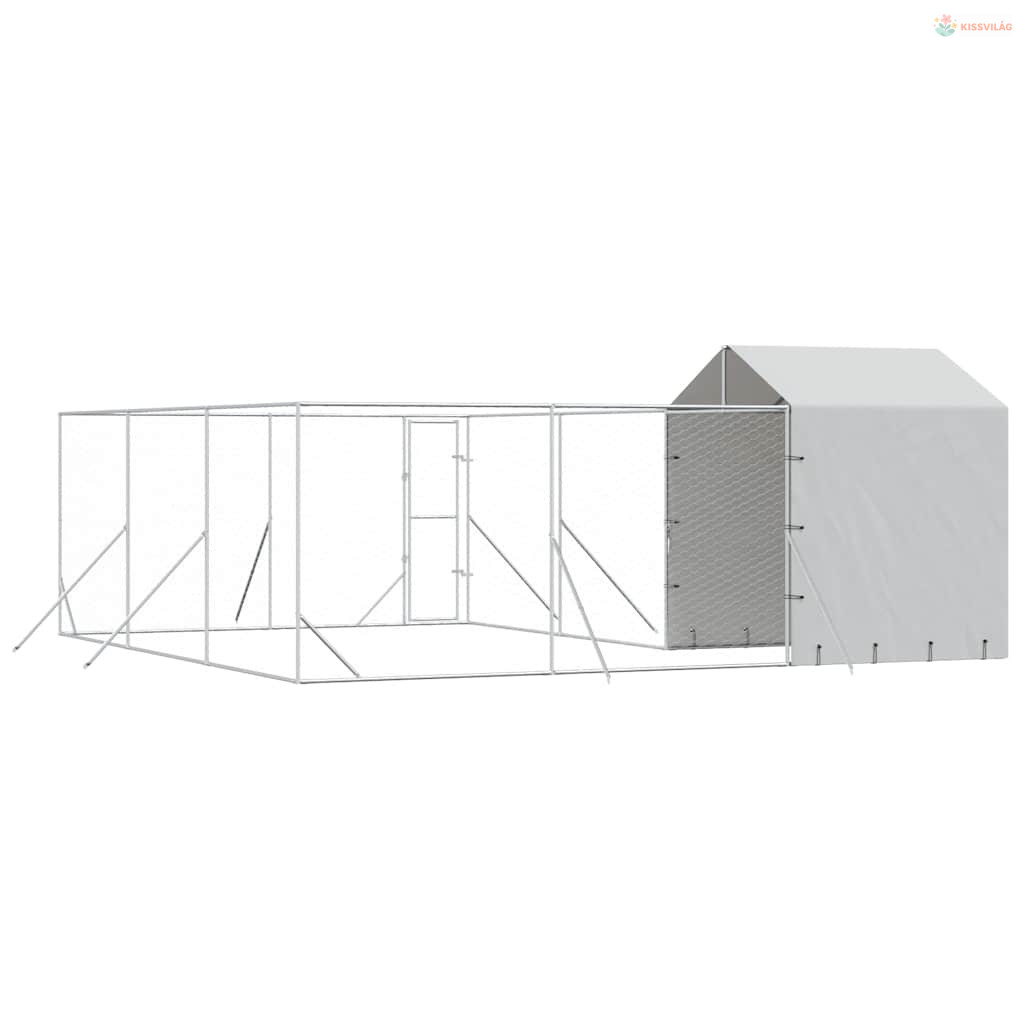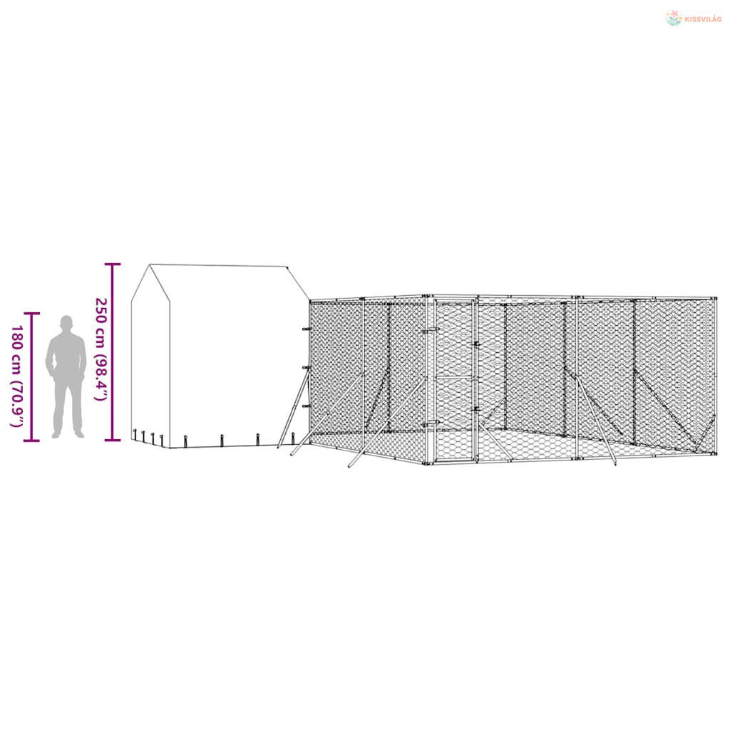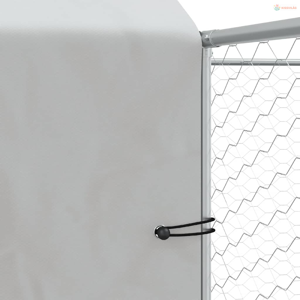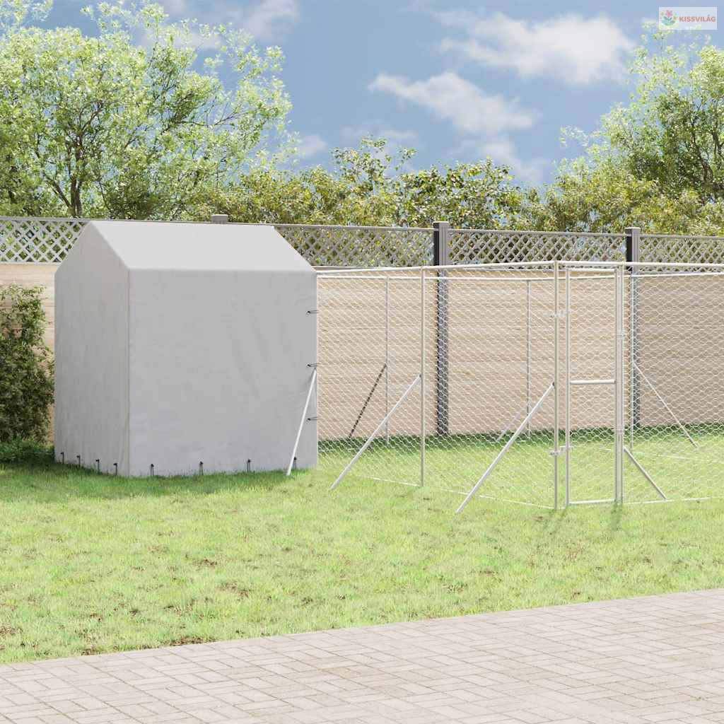 Ezüstszínű horganyzott acél kutyakennel tetővel 6x6x2,5 m