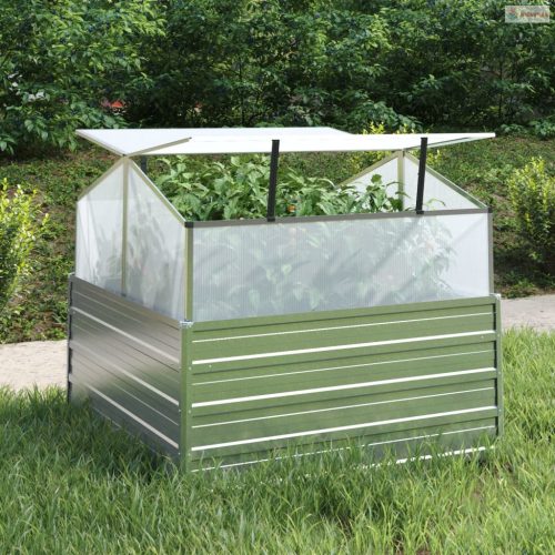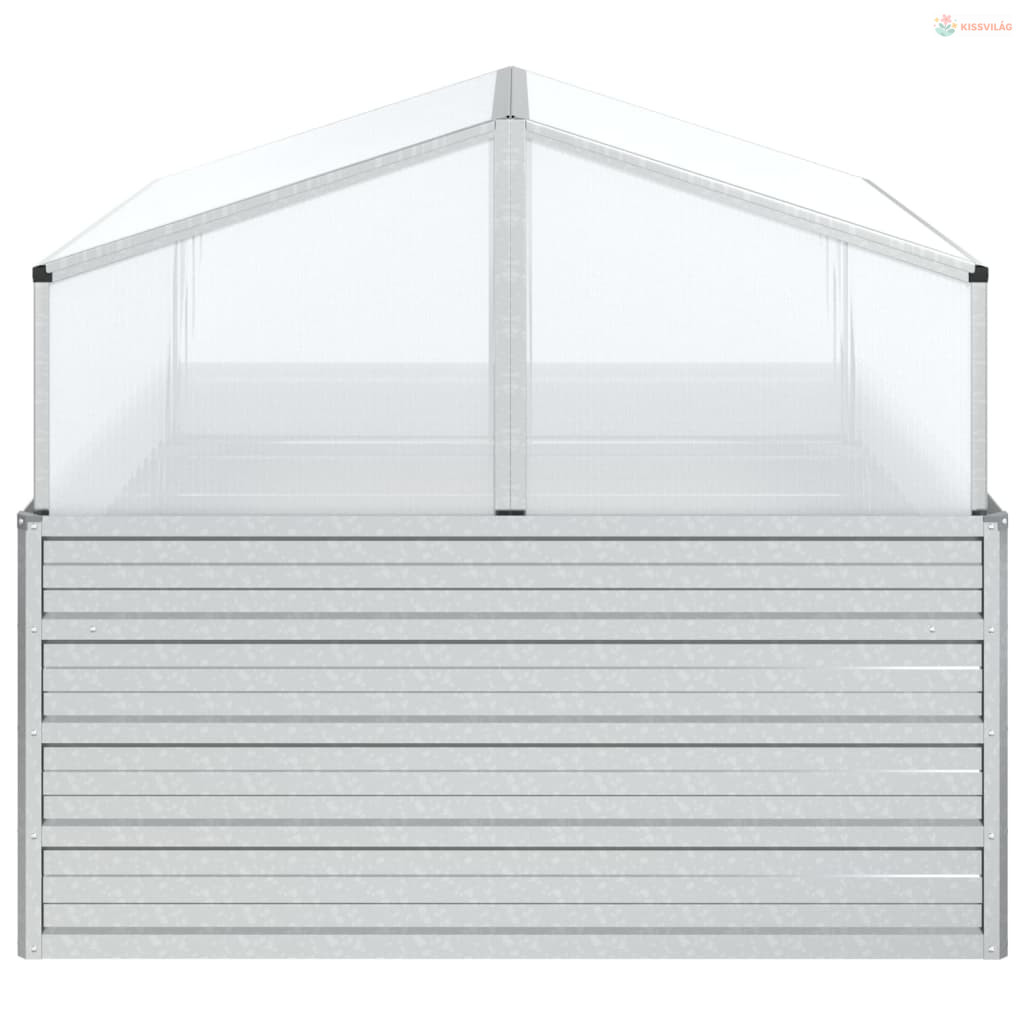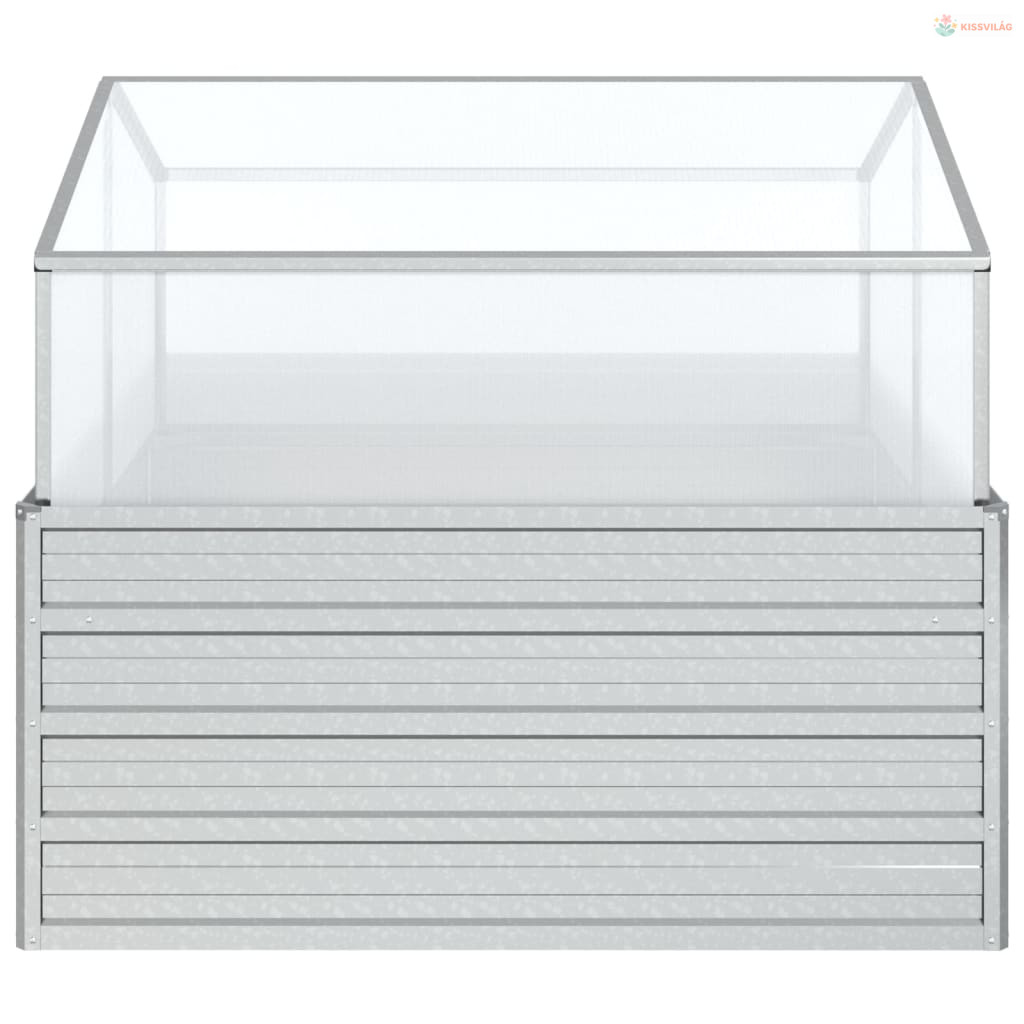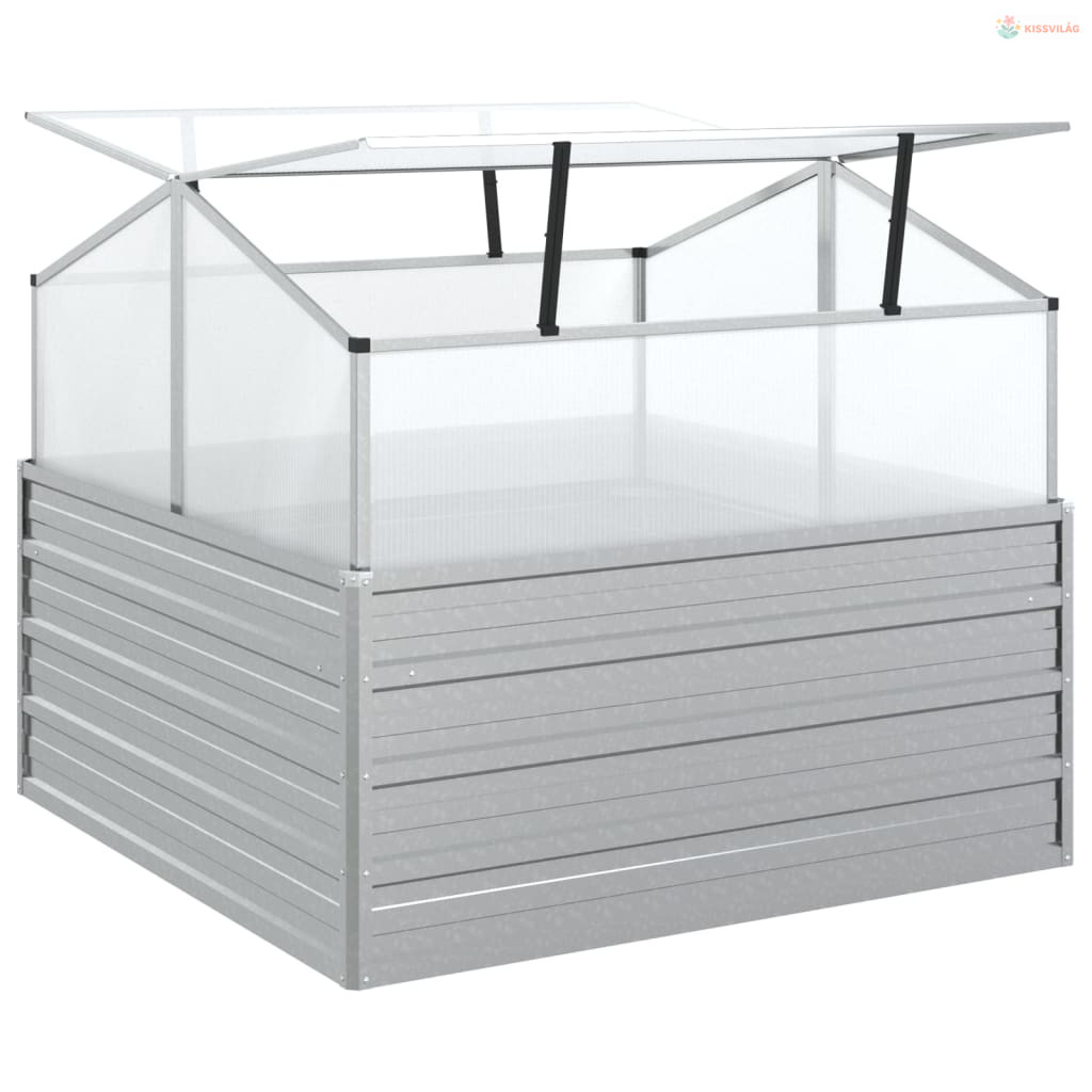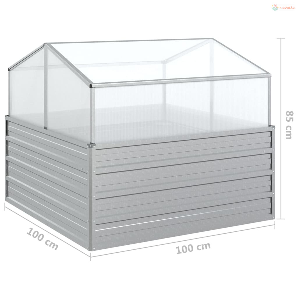 Ezüstszínű kerti magaságyás melegházzal 100 x 100 x 85 cm