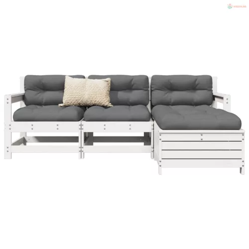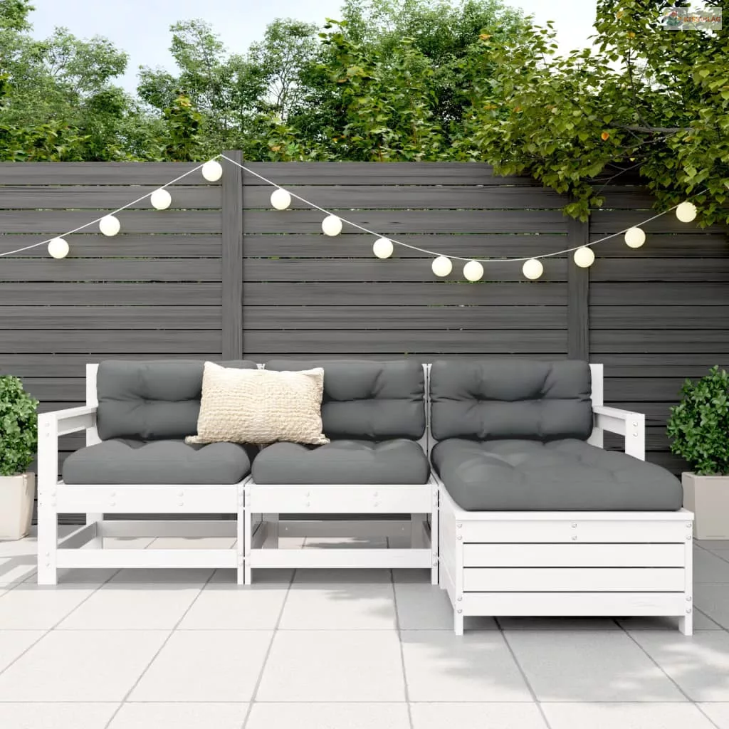 Fehér 4 részes tömör fenyőfa kerti ülőgarnitúra