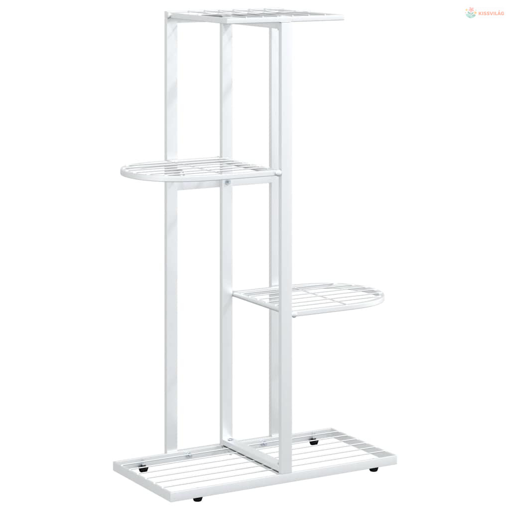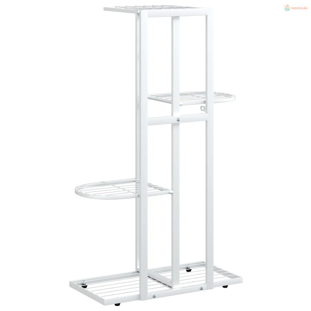 Fehér 4 szintes acél virágtartó állvány 43 x 22 x 76 cm