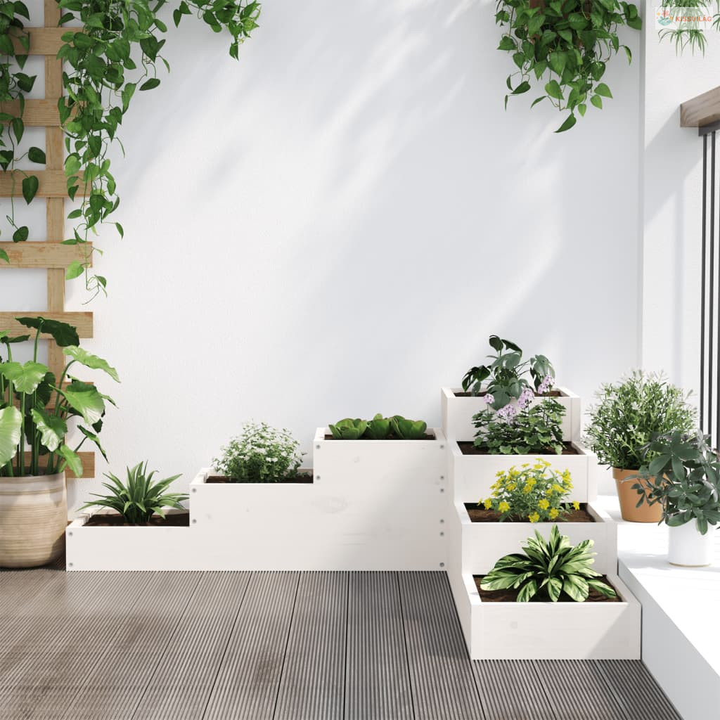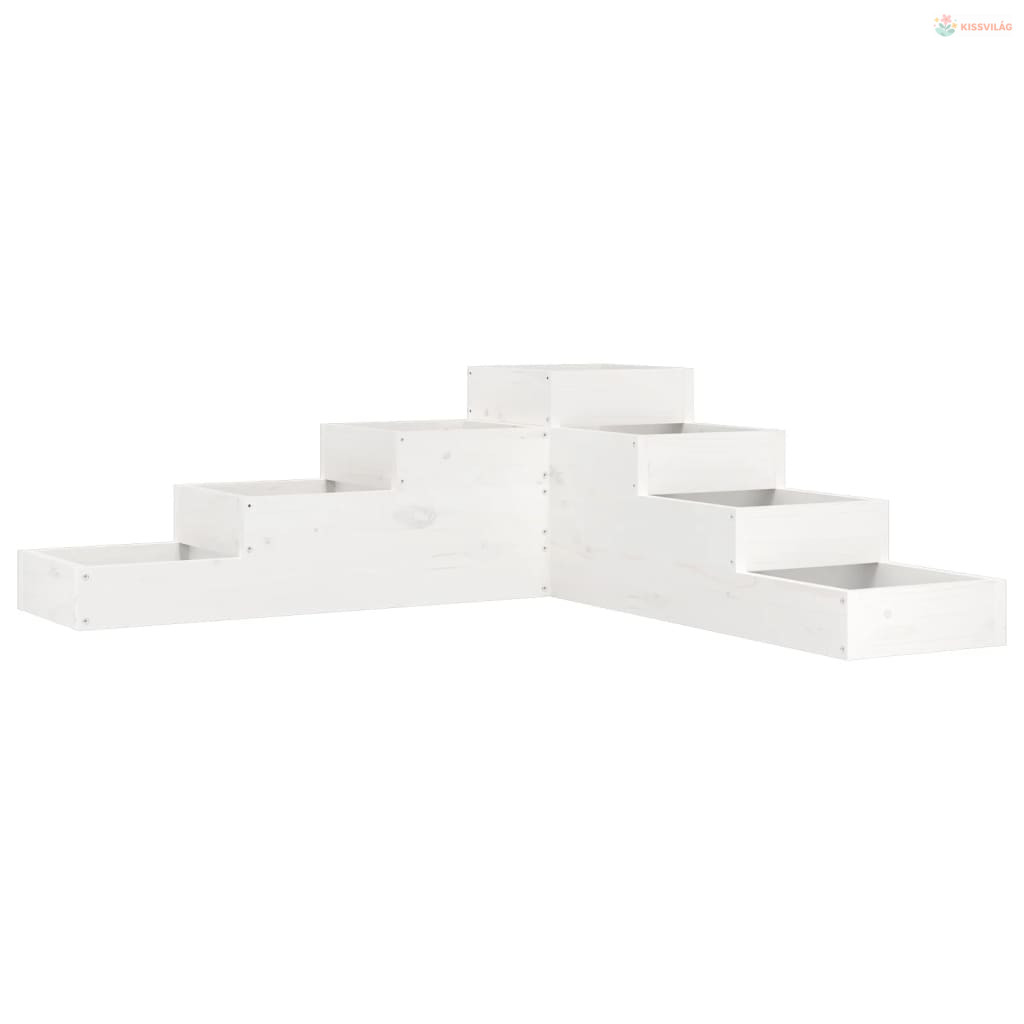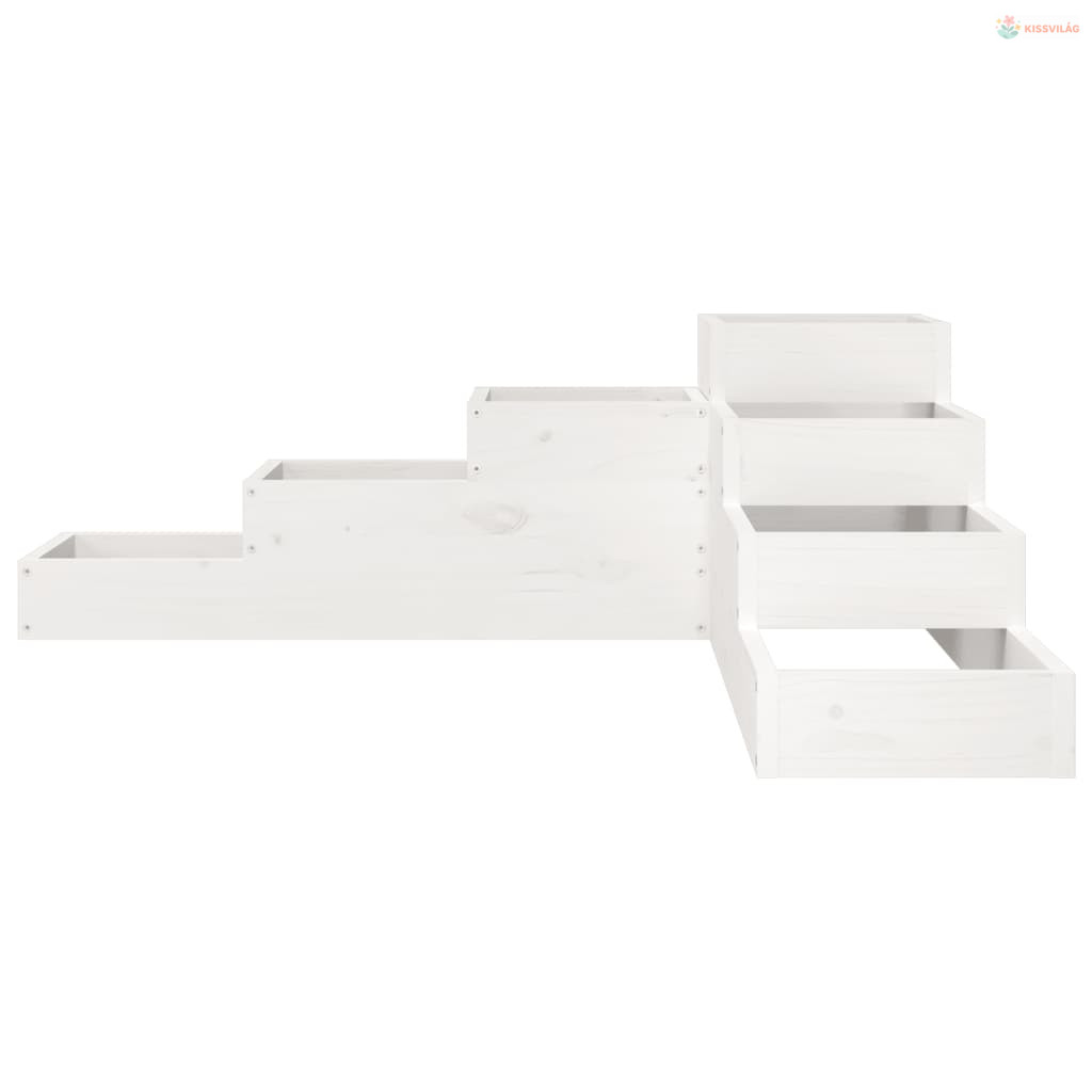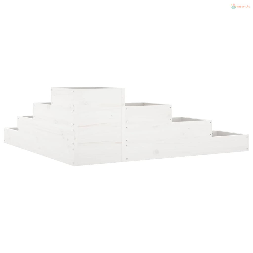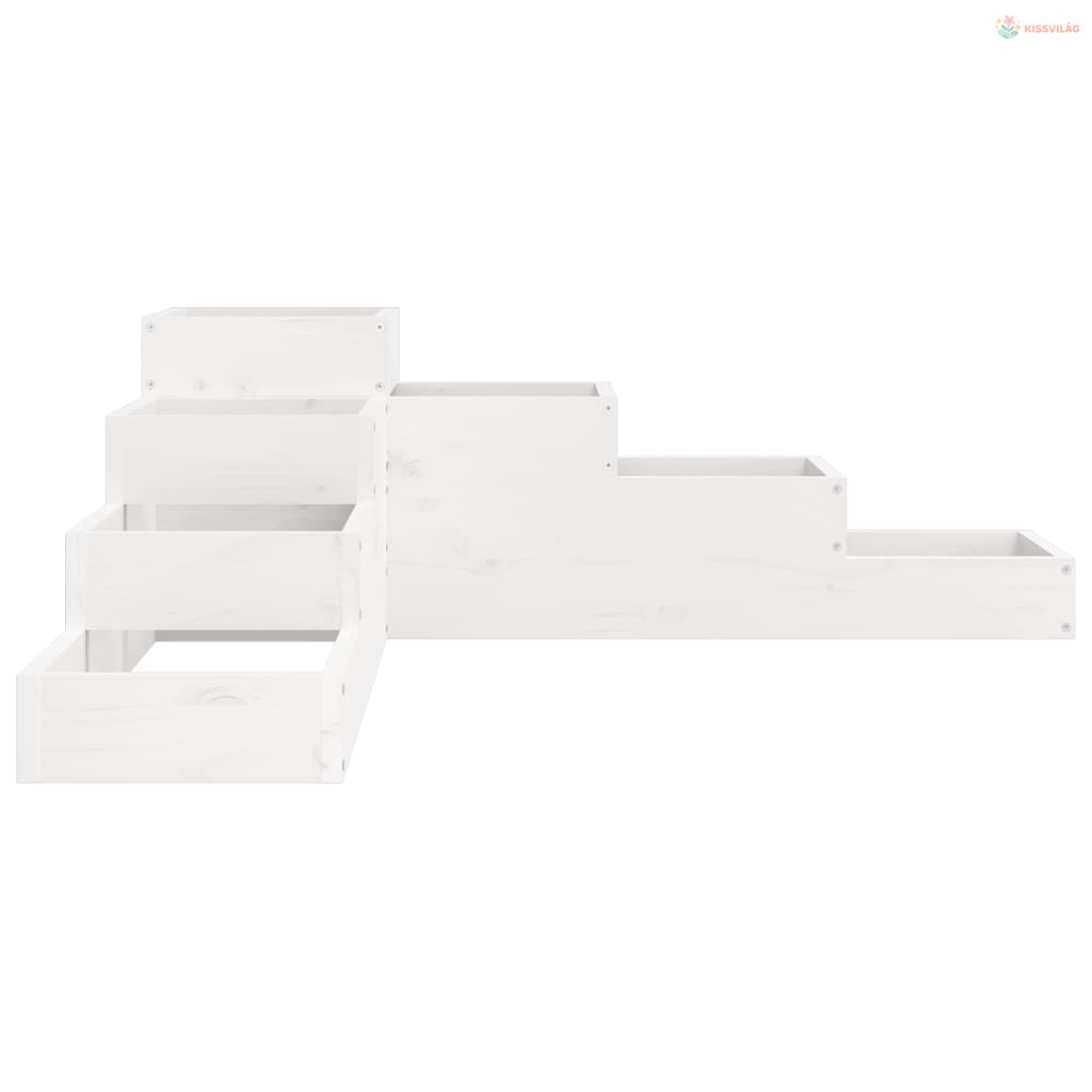 Fehér 4 szintes tömör fenyőfa kerti virágtartó 106x104,5x36 cm