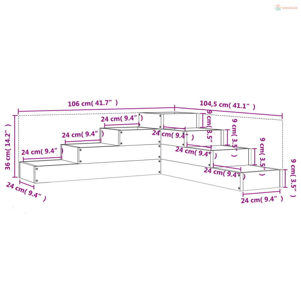• Sarokkialakítás: Ez a fa virágtartó L-alakú, és elhelyezhető erkélyek, verandák, teraszok, udvarok és egyebek sarkaiban, így a kültéri környezet teljes mértékben kihasználható.