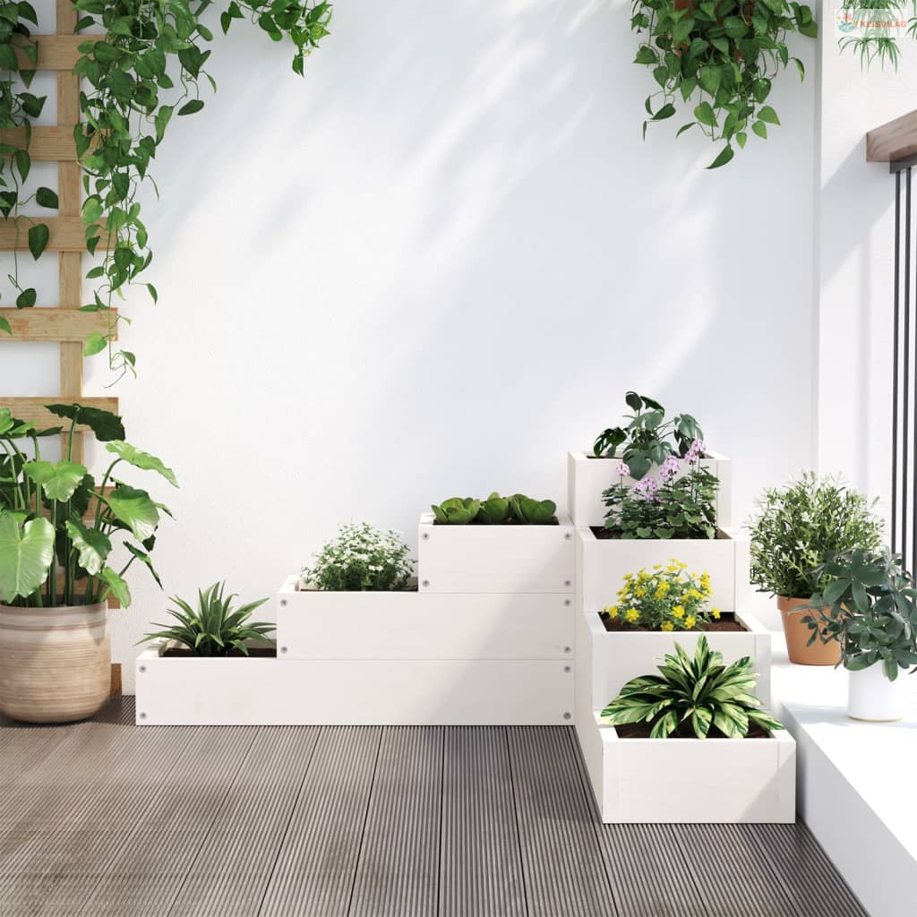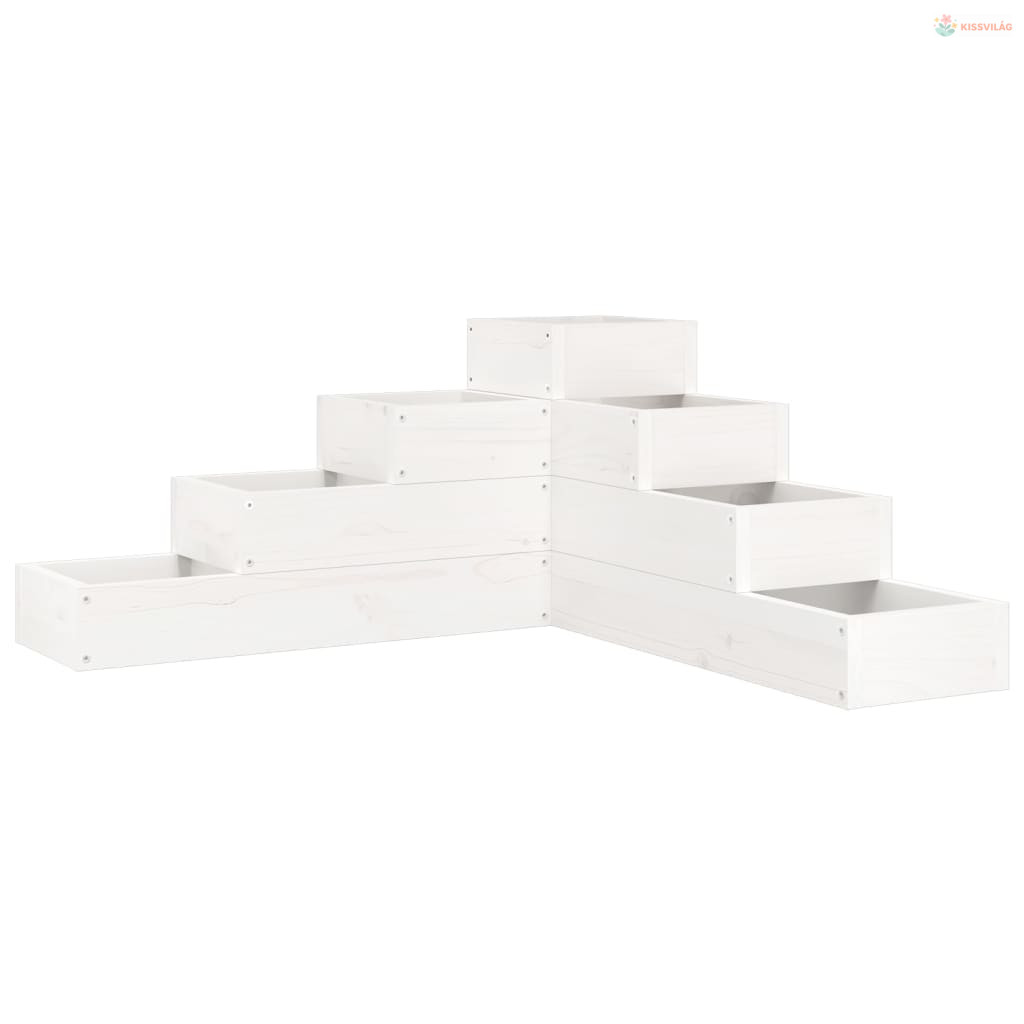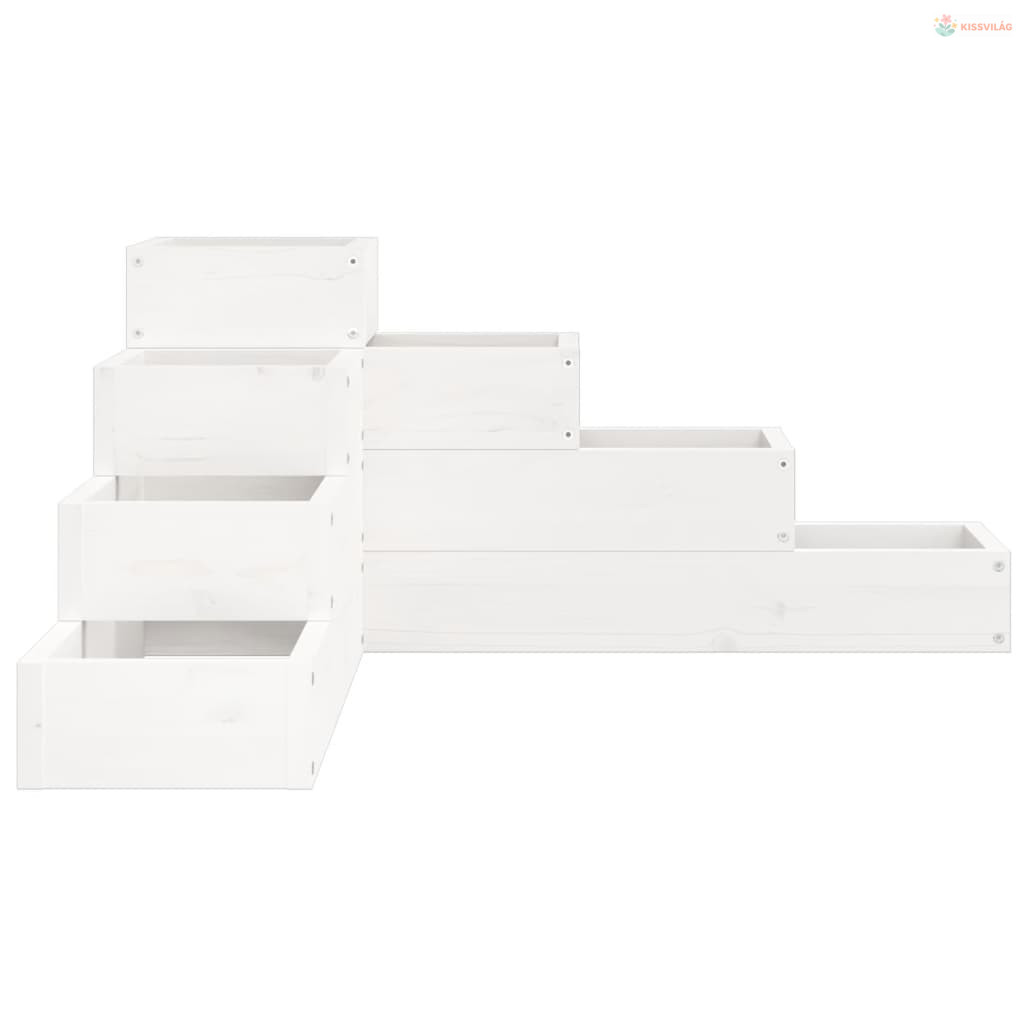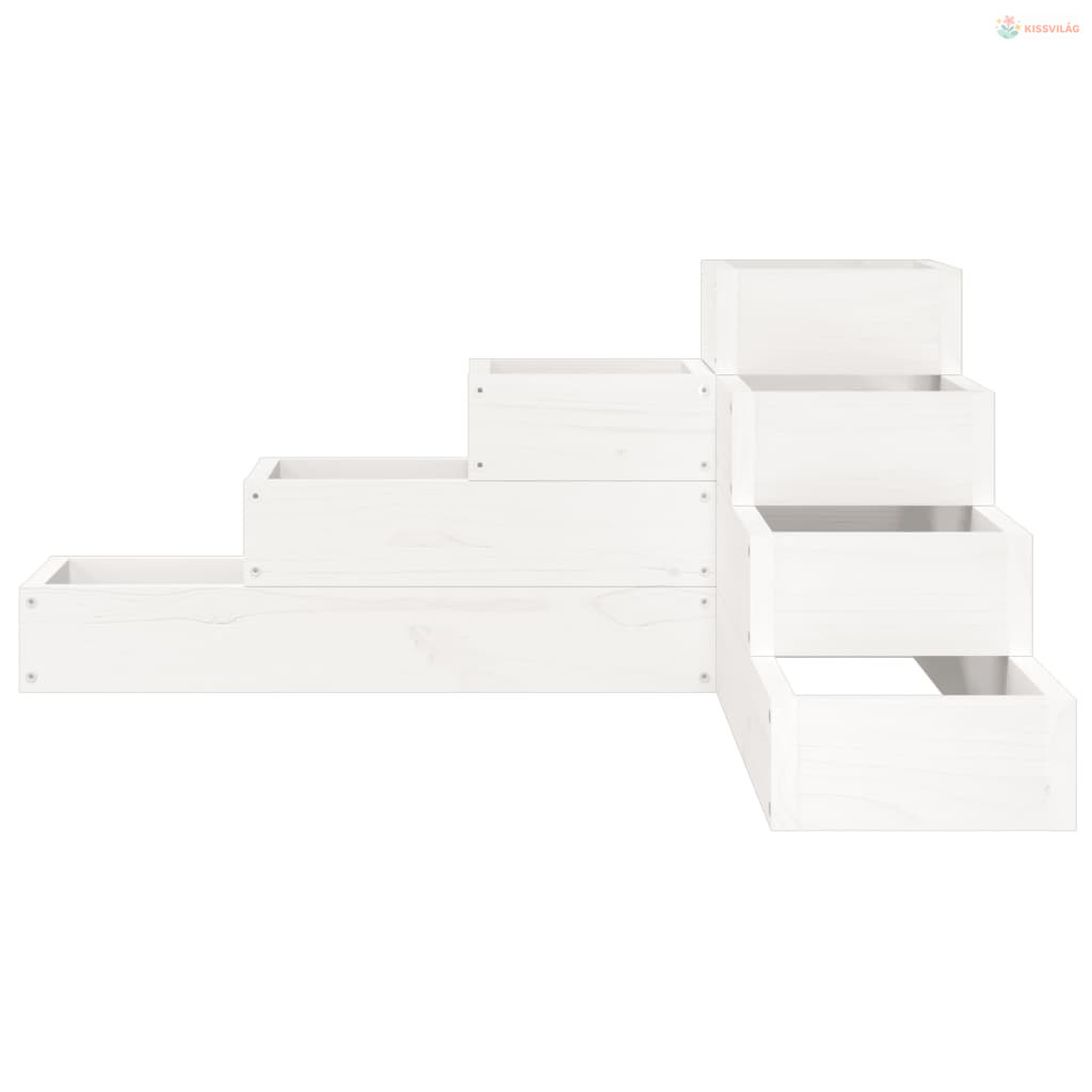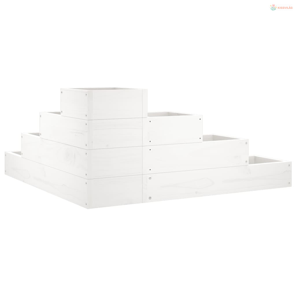 Fehér 4 szintes tömör fenyőfa kerti virágtartó 80,5x79x36 cm