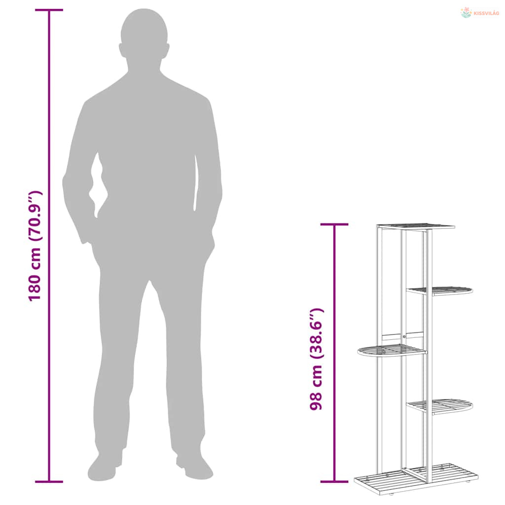 Ez a virágtartó állvány fémből készült, amely strapabíró és tartós, így hosszú évekig használható. Ez a növényállvány ötszintes, és kényelmes helyet biztosít a szép növényeknek. Emellett az állvány nedves ruhával könnyen tisztítható.
