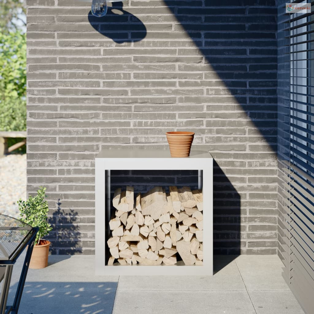 Fehér acél tűzifatároló 60 x 40 x 60 cm
