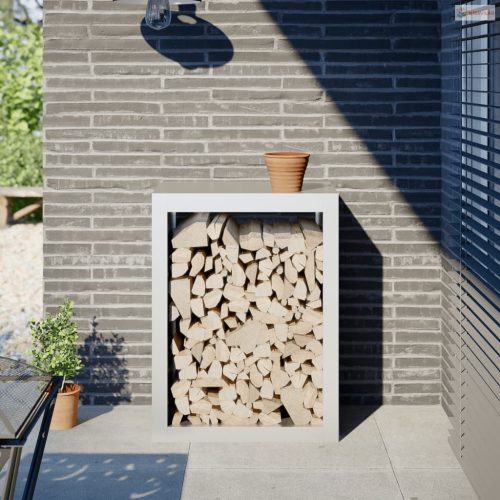 Fehér acél tűzifatároló 60 x 40 x 80 cm