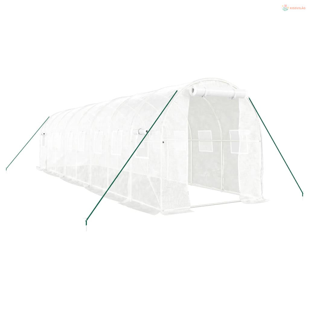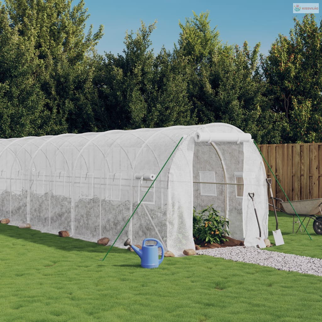 Fehér acélvázas melegház 16 m² 8 x 2 x 2 m