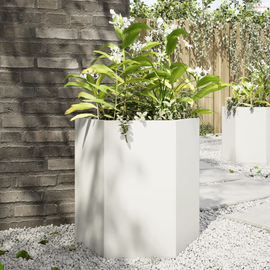 Fehér hatszögű acél kerti növénytartó 46 x 40 x 45 cm