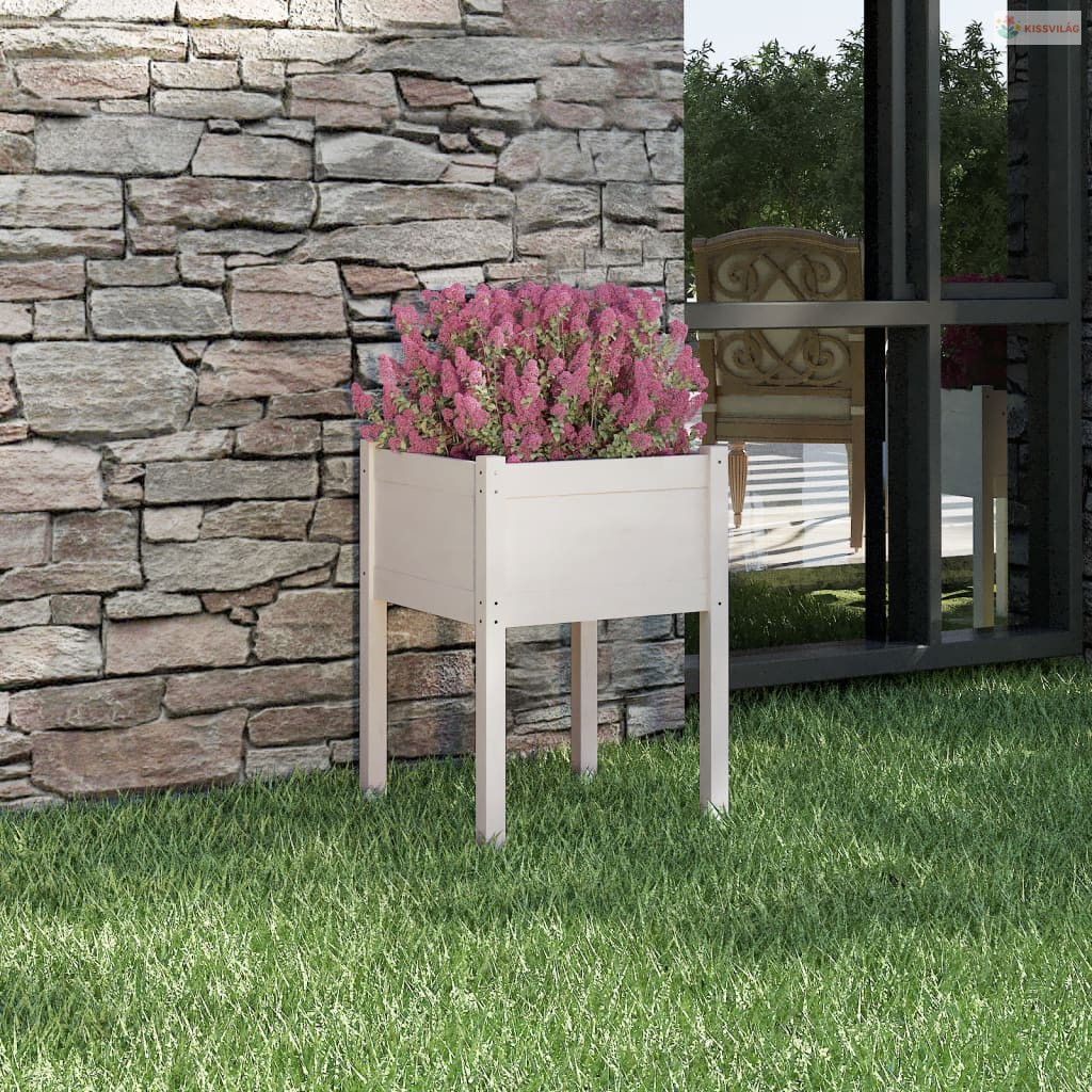 Fehér kerti tömör fenyőfa virágtartó 50 x 50 x 70 cm
