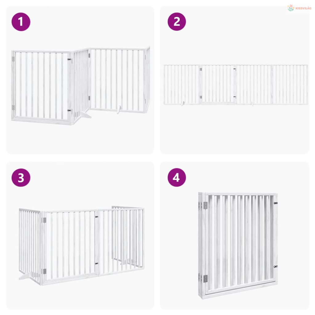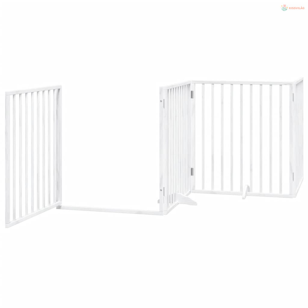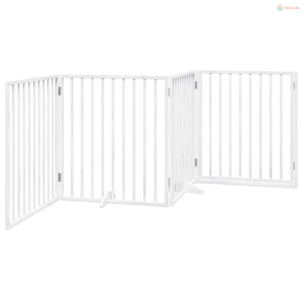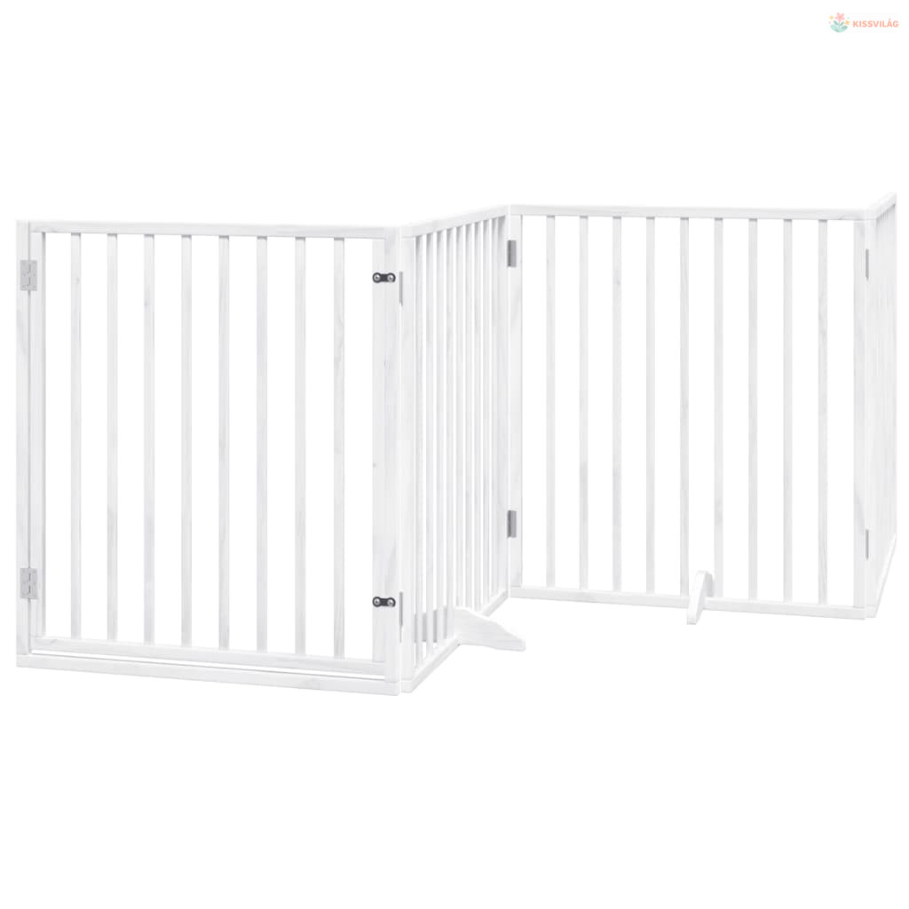 Fehér, nyárfa kutyakapu összecsukható ajtóval, 4 panellel, 320 cm