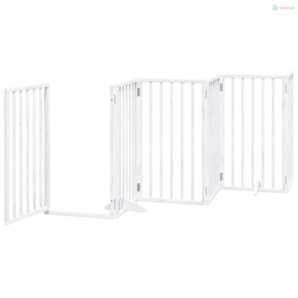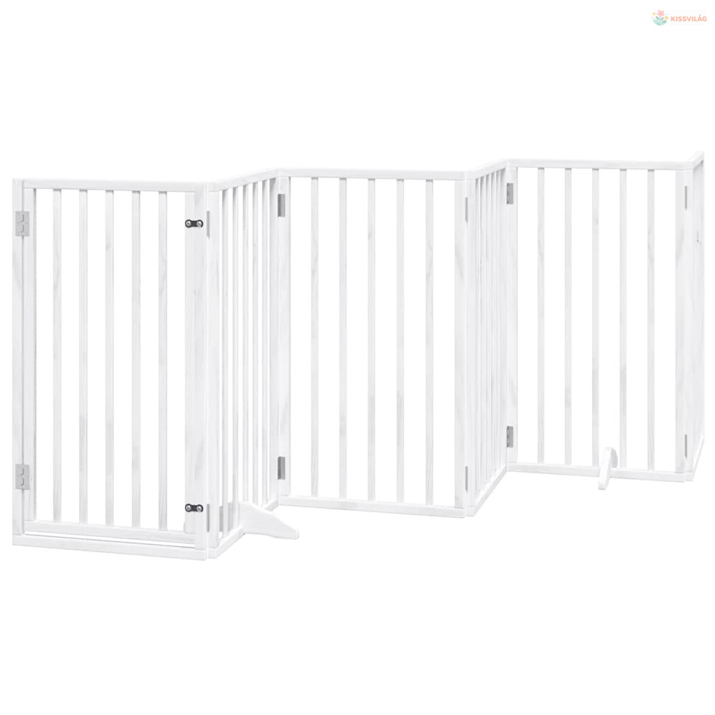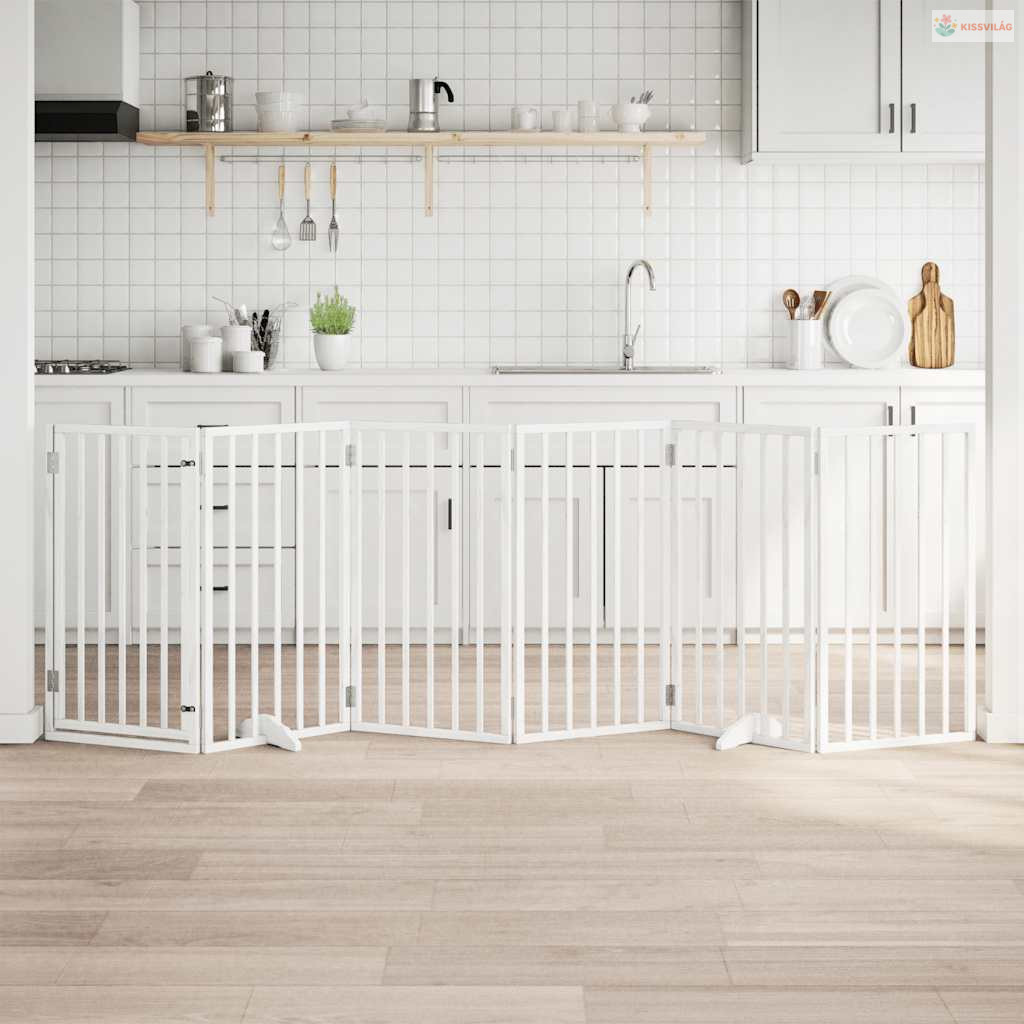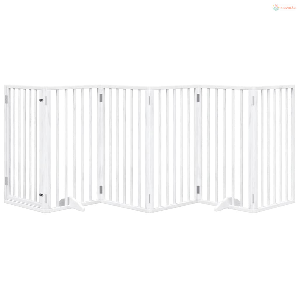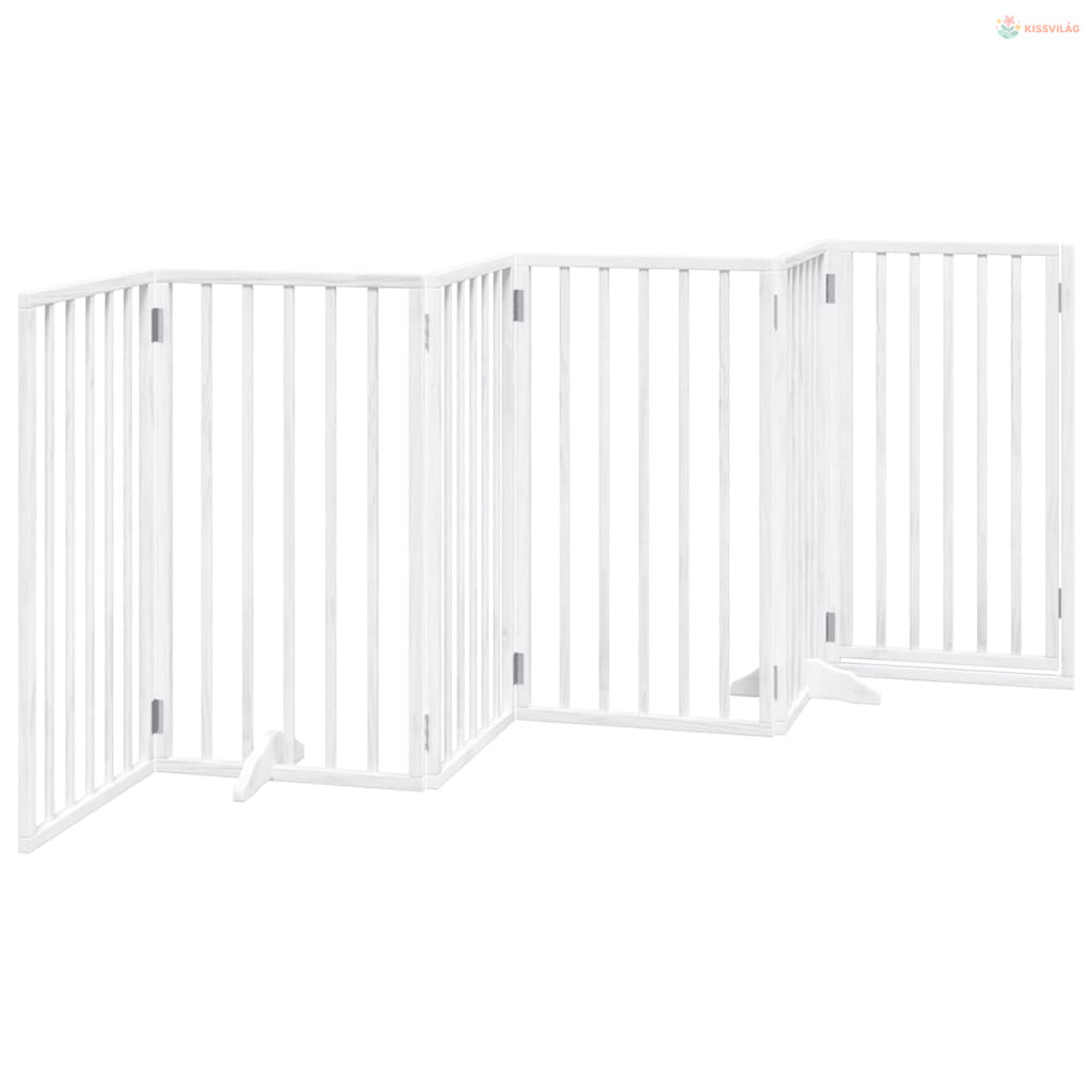 Fehér, nyárfa kutyakapu összecsukható ajtóval, 6 panellel, 300 cm