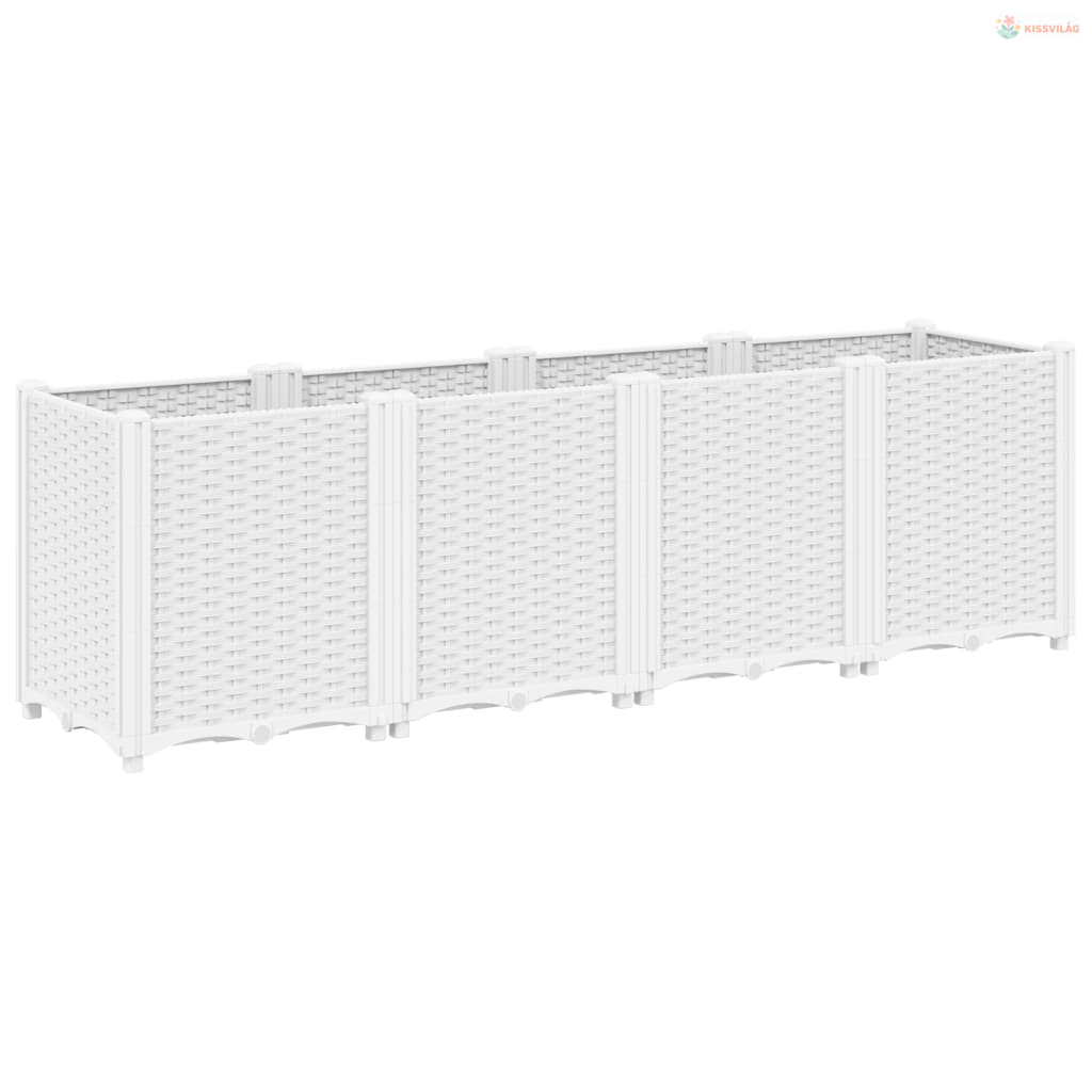 Fehér polipropilén kerti ültetőláda 160 x 40 x 53 cm