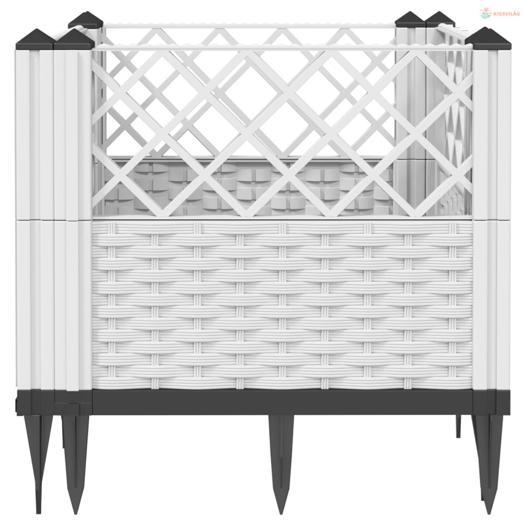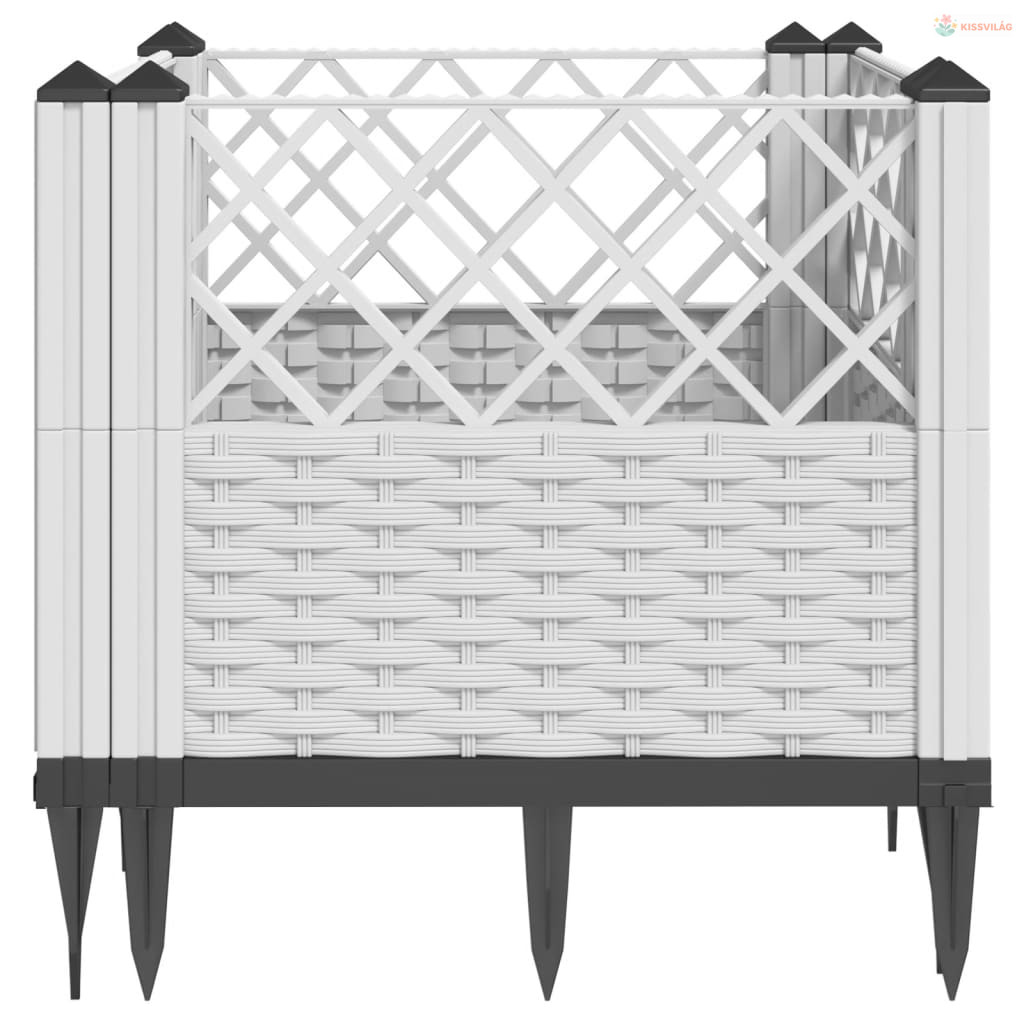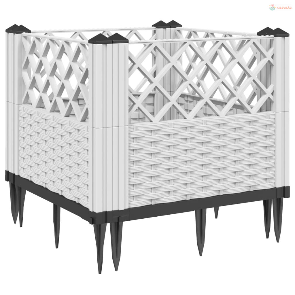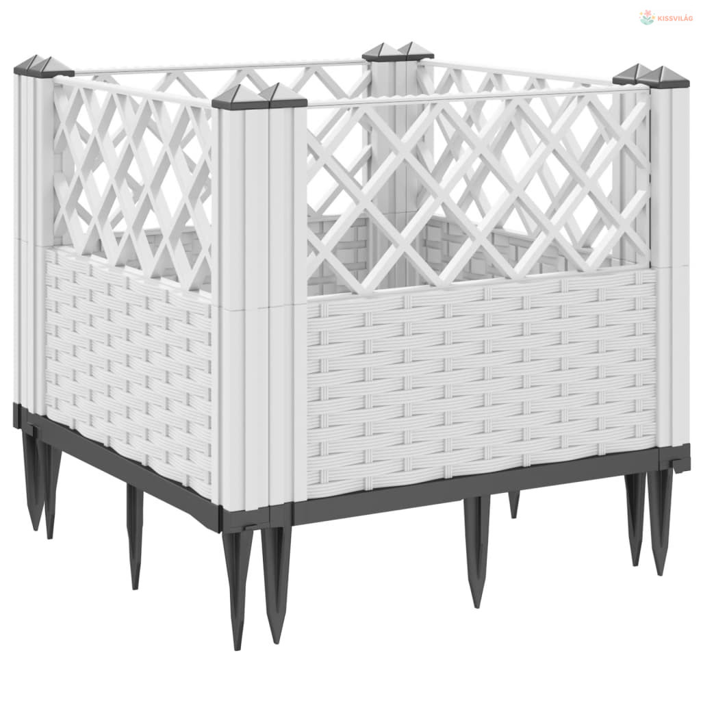 Fehér polipropilén kerti virágláda cövekekkel 42,5x42,5x28,5 cm