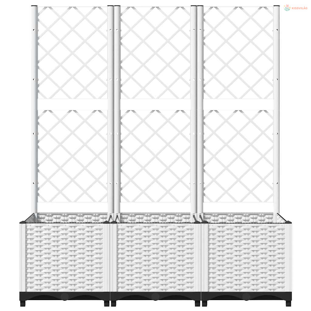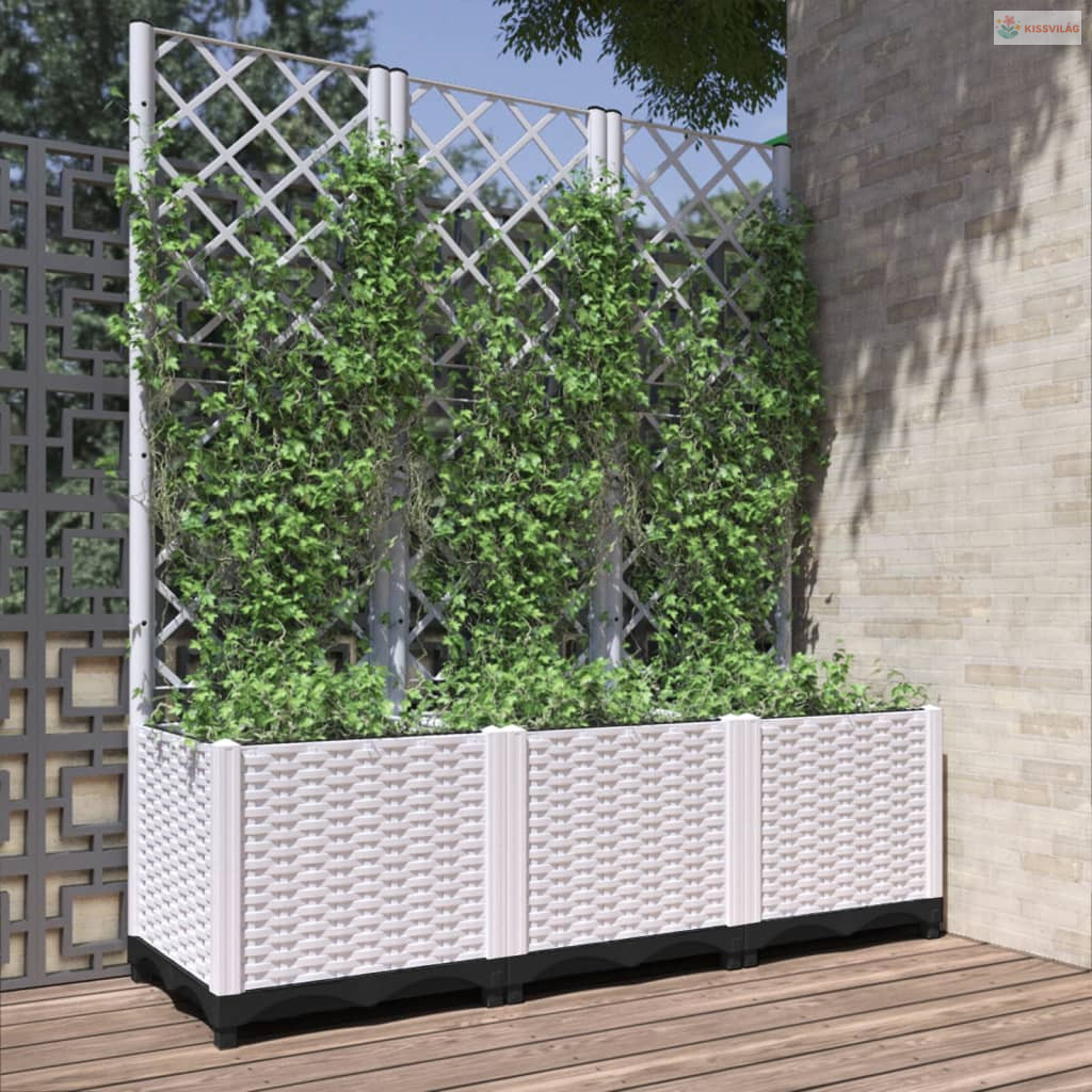 Fehér polipropilén rácsos kerti ültetőláda 120 x 40 x 136 cm