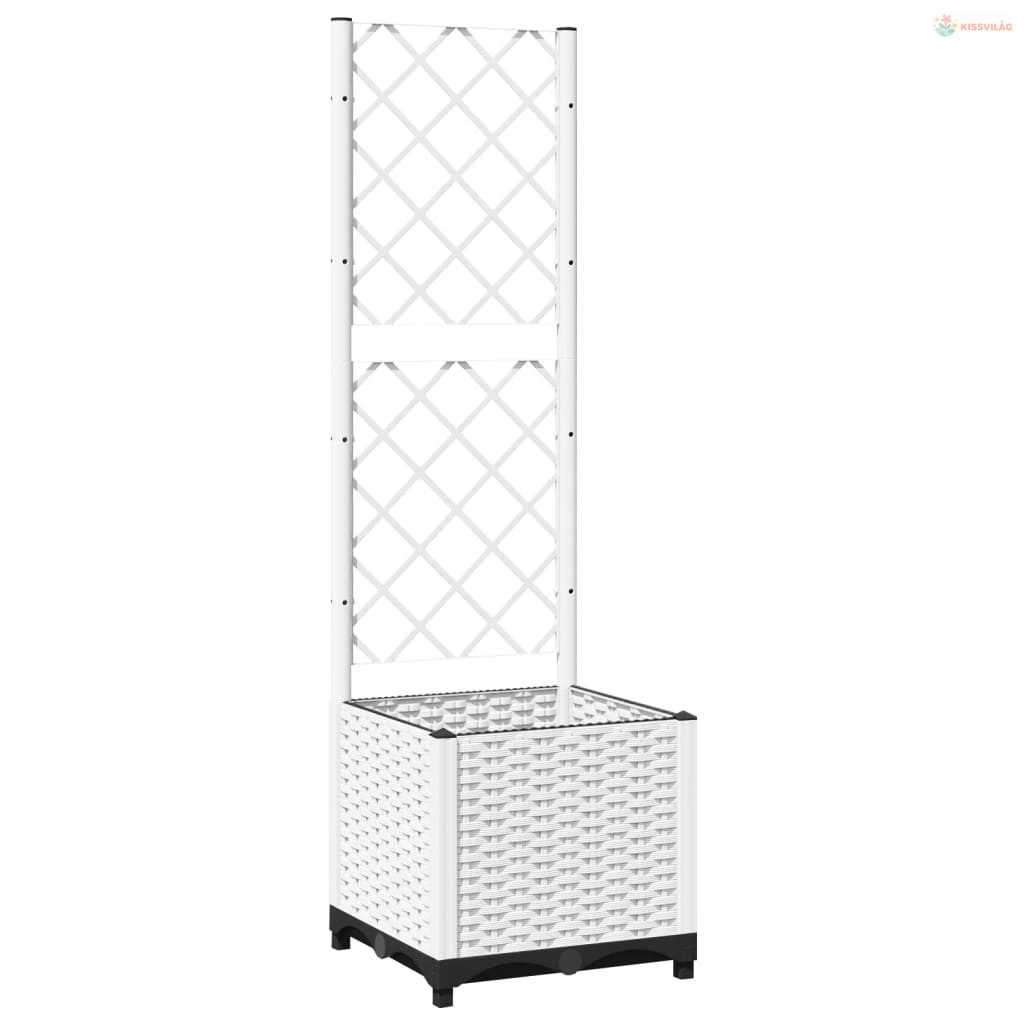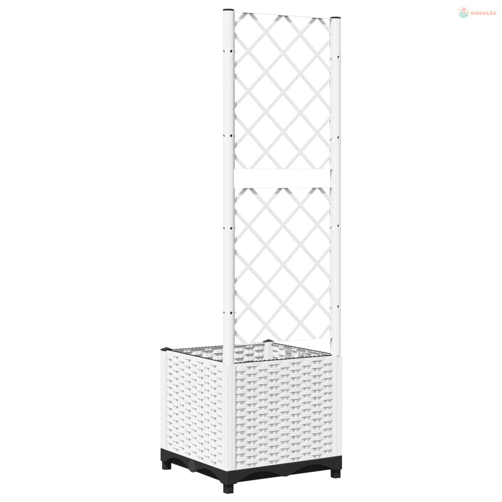 Fehér polipropilén rácsos kerti ültetőláda 40 x 40 x 136 cm