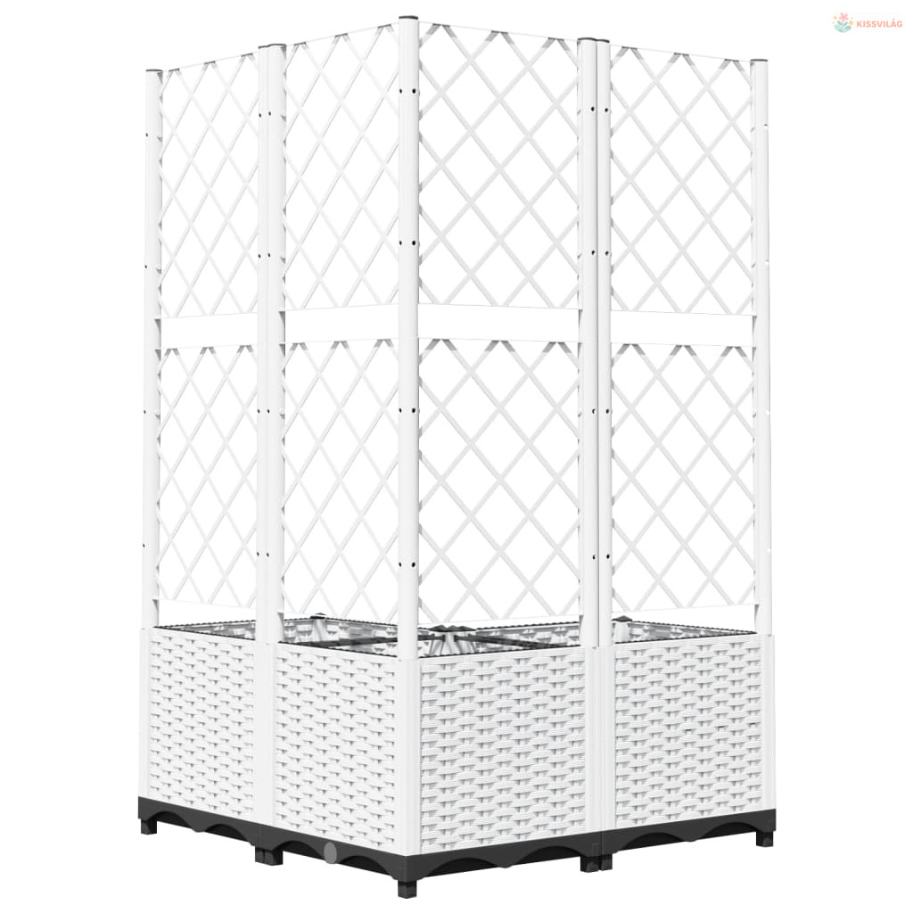 Fehér polipropilén rácsos kerti ültetőláda 80 x 80 x 136 cm