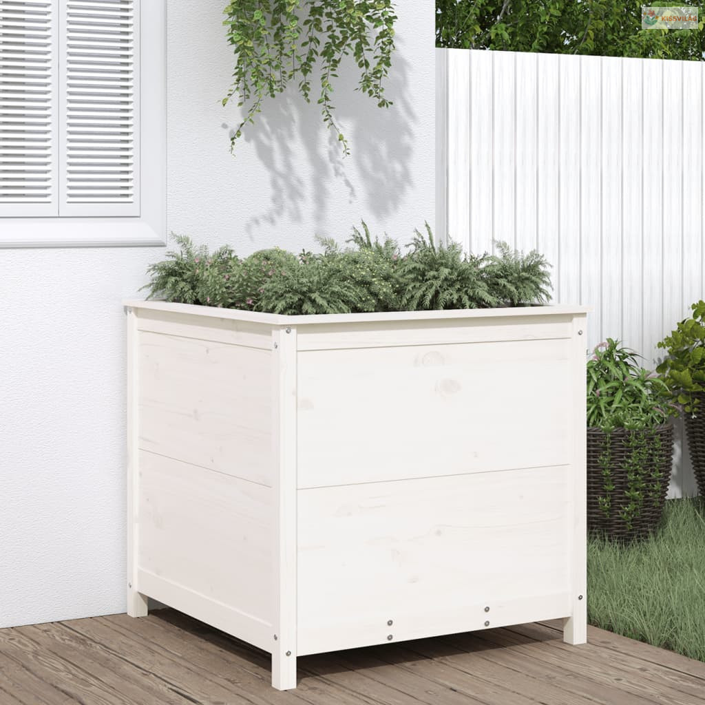 Fehér tömör fenyő kerti növénytartó 82,5x82,5x78 cm